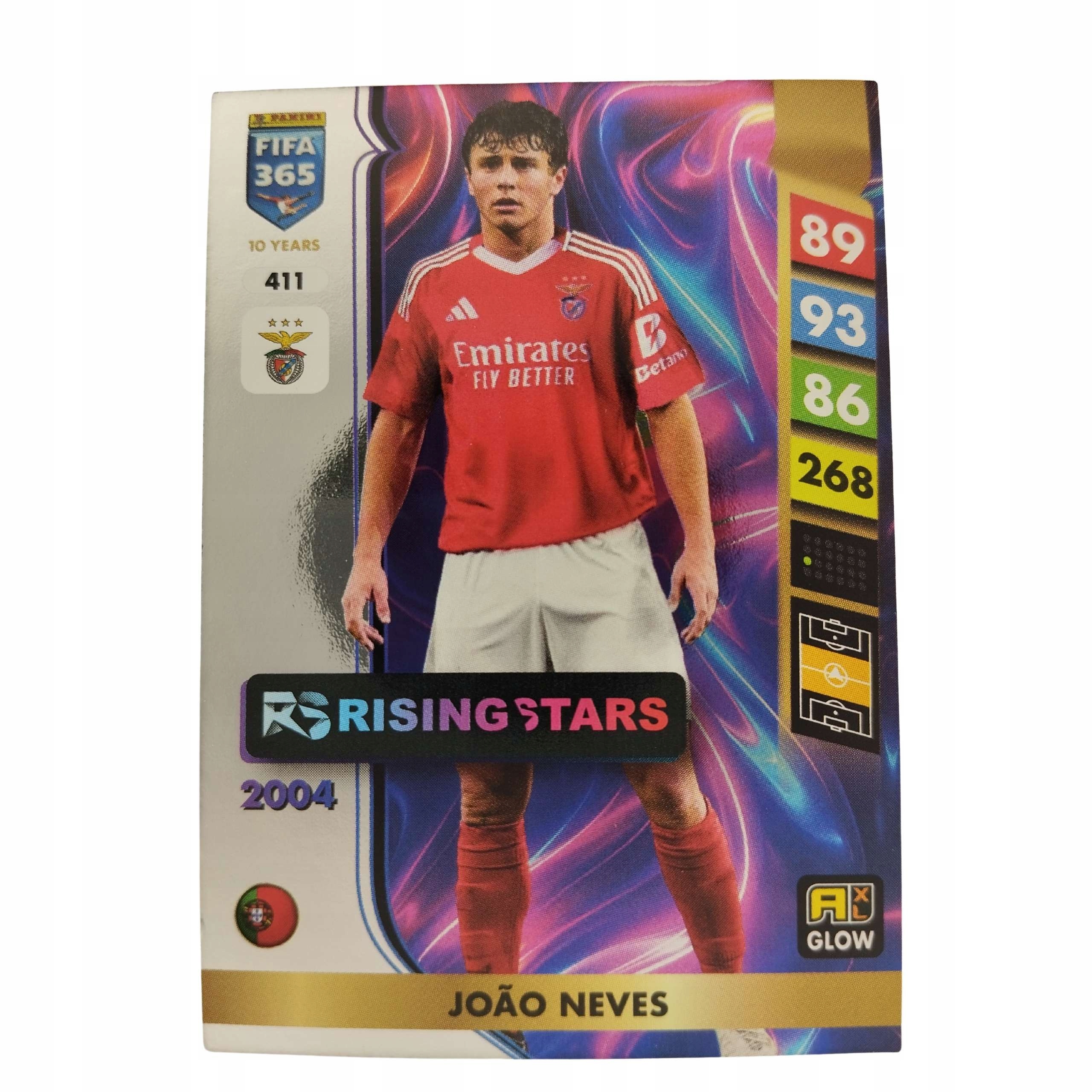 FIFA 365 2025 Картки Adrenalyn XL Panini Rising Stars Glow 411 Neves Benfica