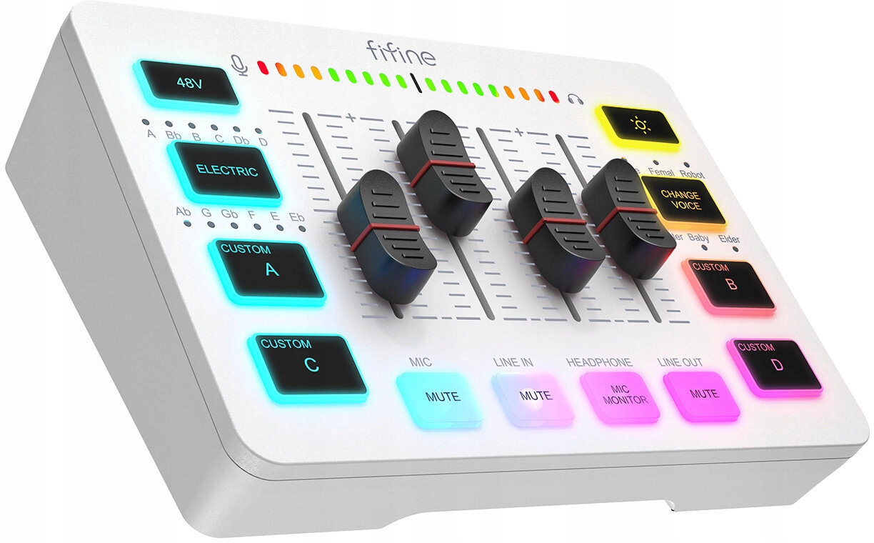 Fifine Sound Card SC3W Black USB z RGB XLR