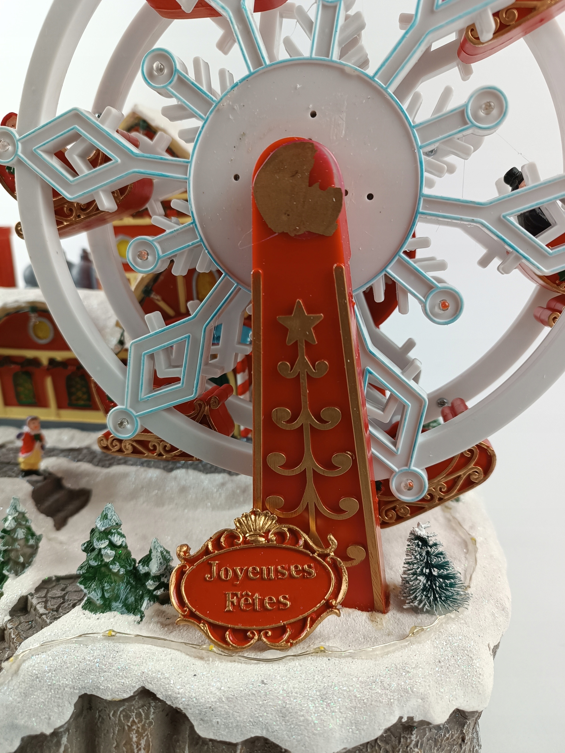 - Красиве світло та рух: Різдвяне місто було обладнано спеціальним світлодіодним освітленням, що складається з 51 діодів із холодним білим та багатоколеним світлом. Ви можете вибрати постійне світло або миготливий ефект, залежно від ваших уподобань. 4 Крім того, млин має базу ПВХ, що забезпечує додаткову стабільність усієї структури.