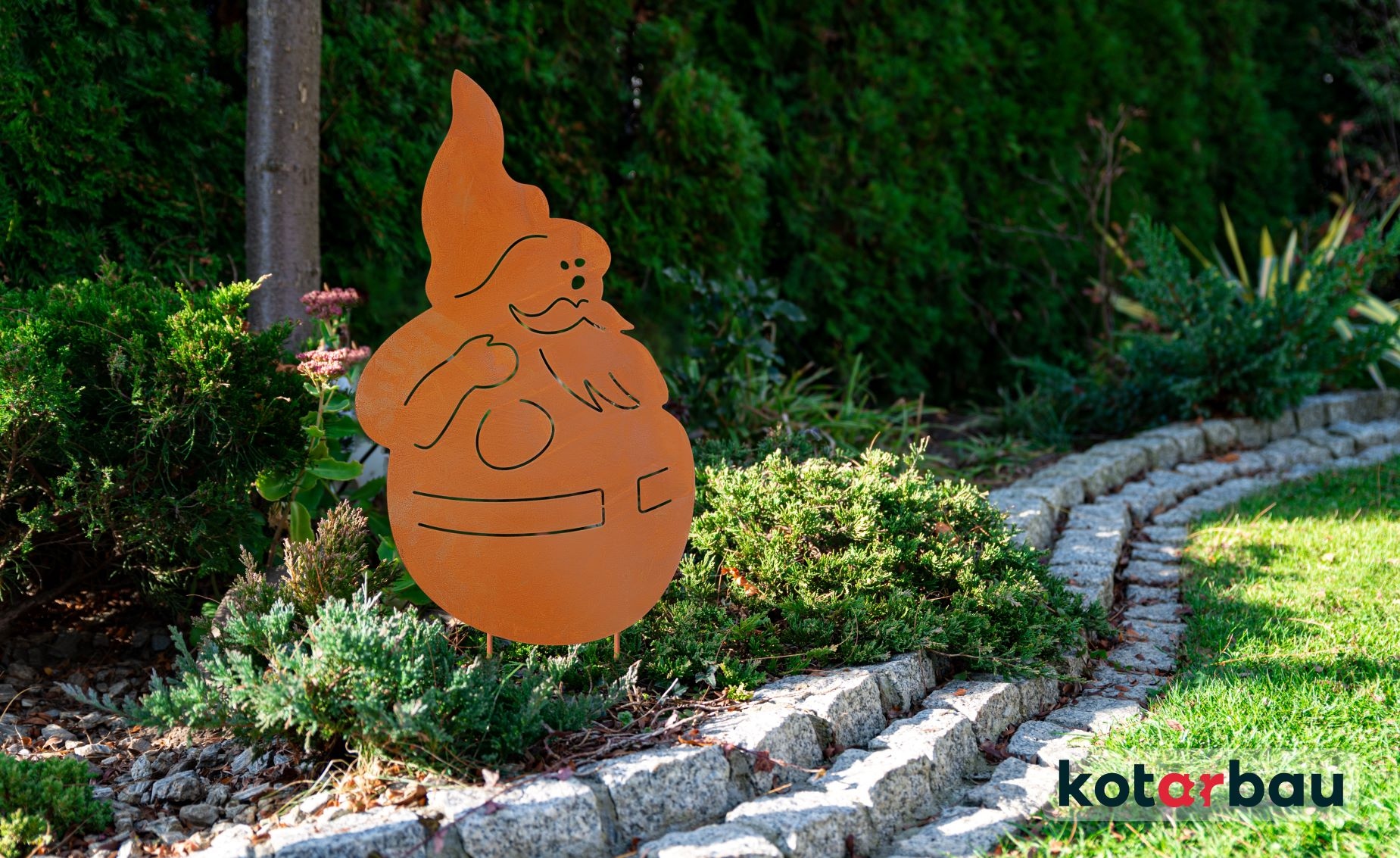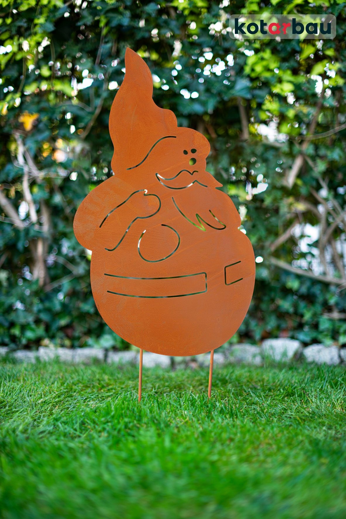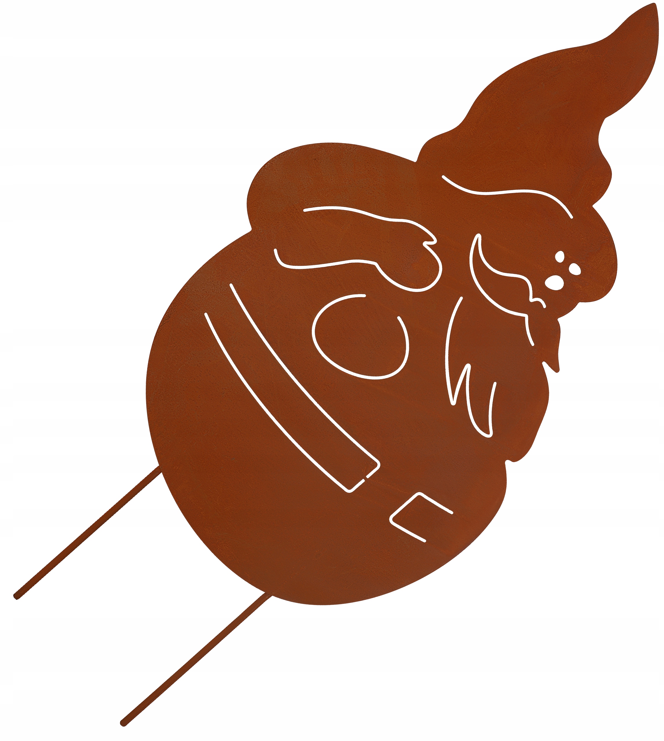 - Дід Мороз, випалений з листового металу на прутах, має природний іржавий ефект, тому ідеально підходить з хвойними деревами та садовими прикрасами.