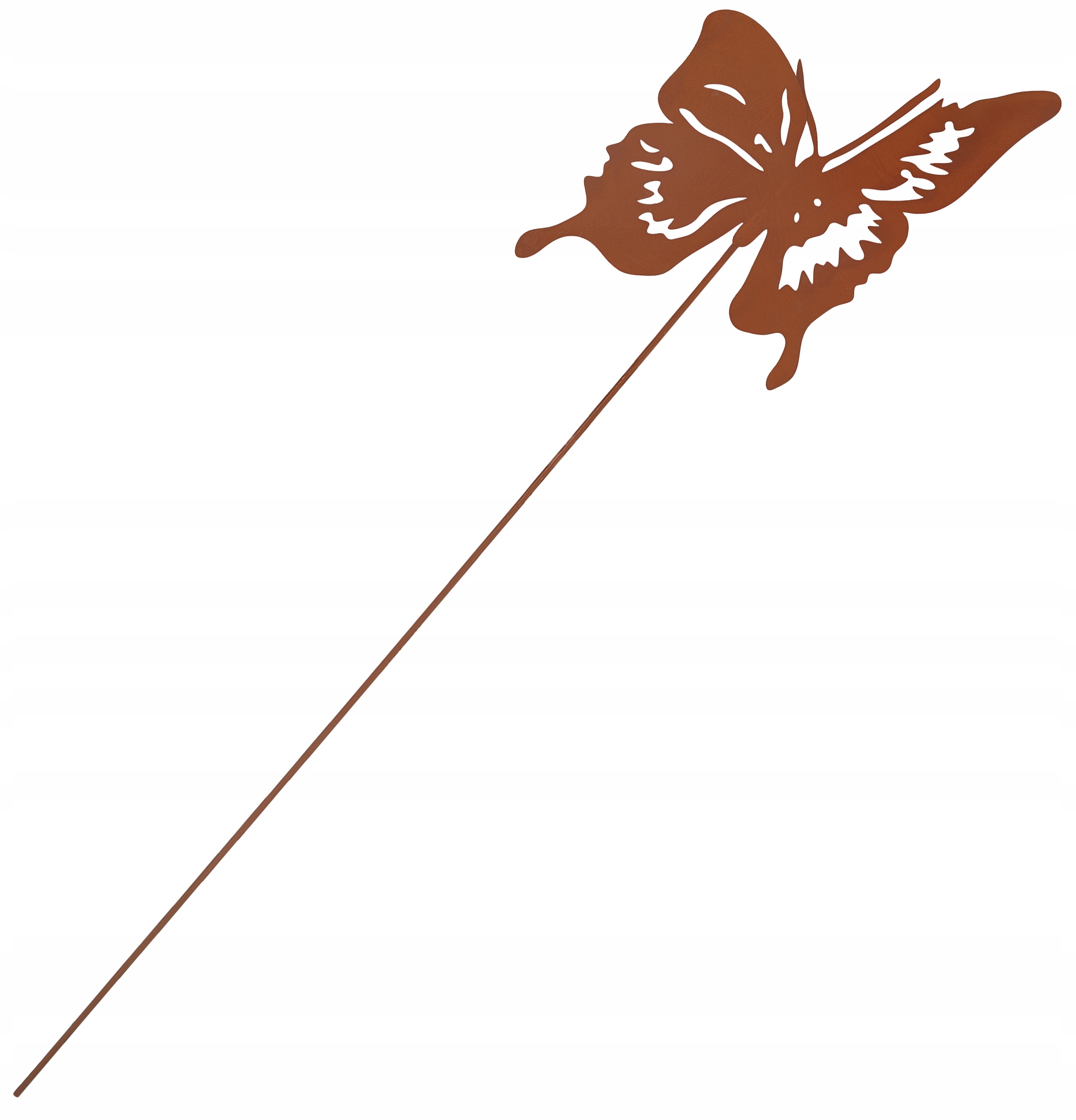 Хочете прикрасити свій сад оригінальною прикрасою, яка виділятиме вас серед сусідів? Метелик, випалений з листового металу на довгому пруті, стане вітриною вашого майна, додасть йому характеру та викличе інтерес у гостей. Це декоративний аксесуар із сільським характером. Розмістити його можна, наприклад, на стовпі огорожі, дерев'яному пеньку, клумбі або поруч з хвойними кущами. Вибирайте унікальні садові прикраси!