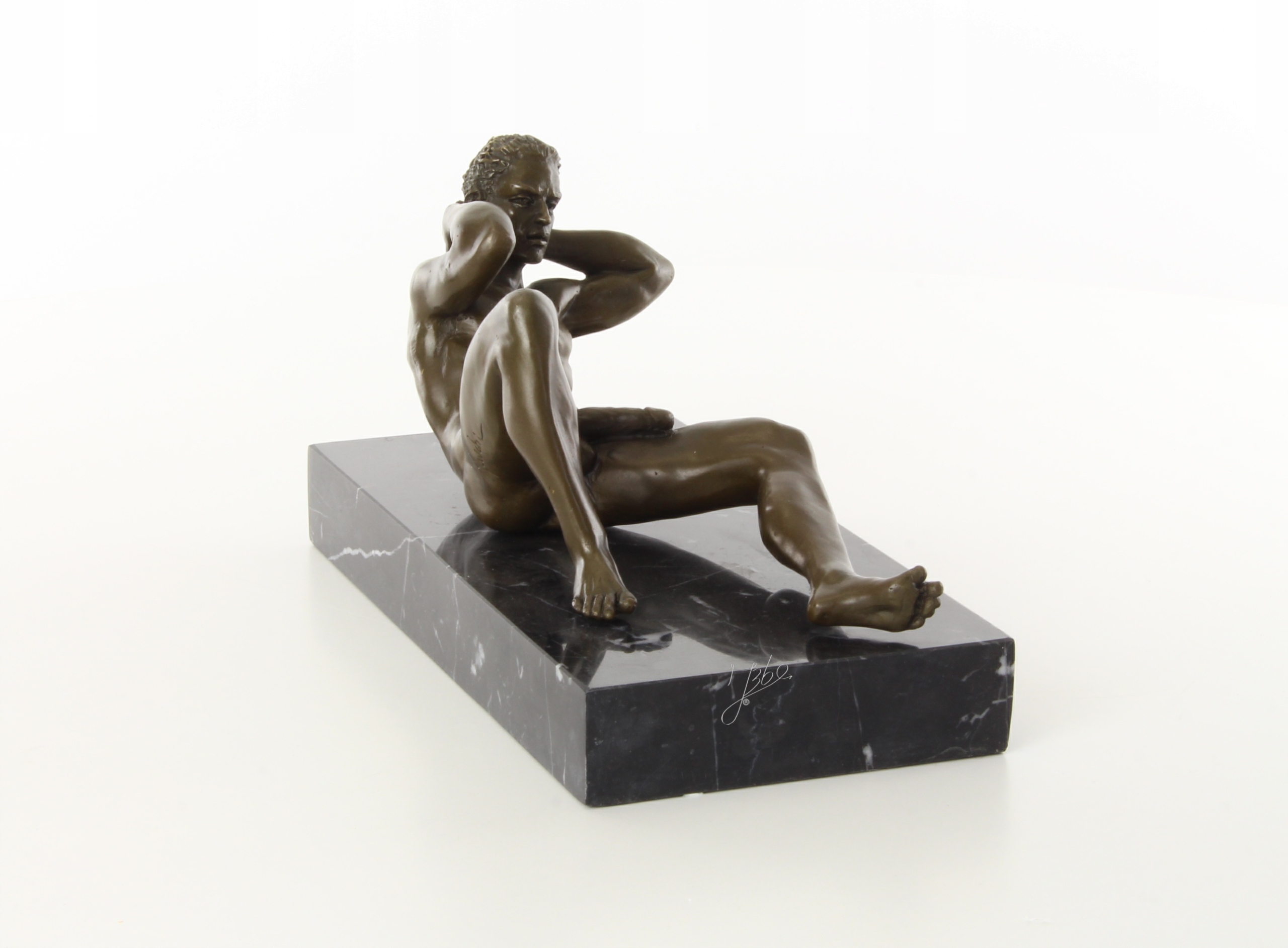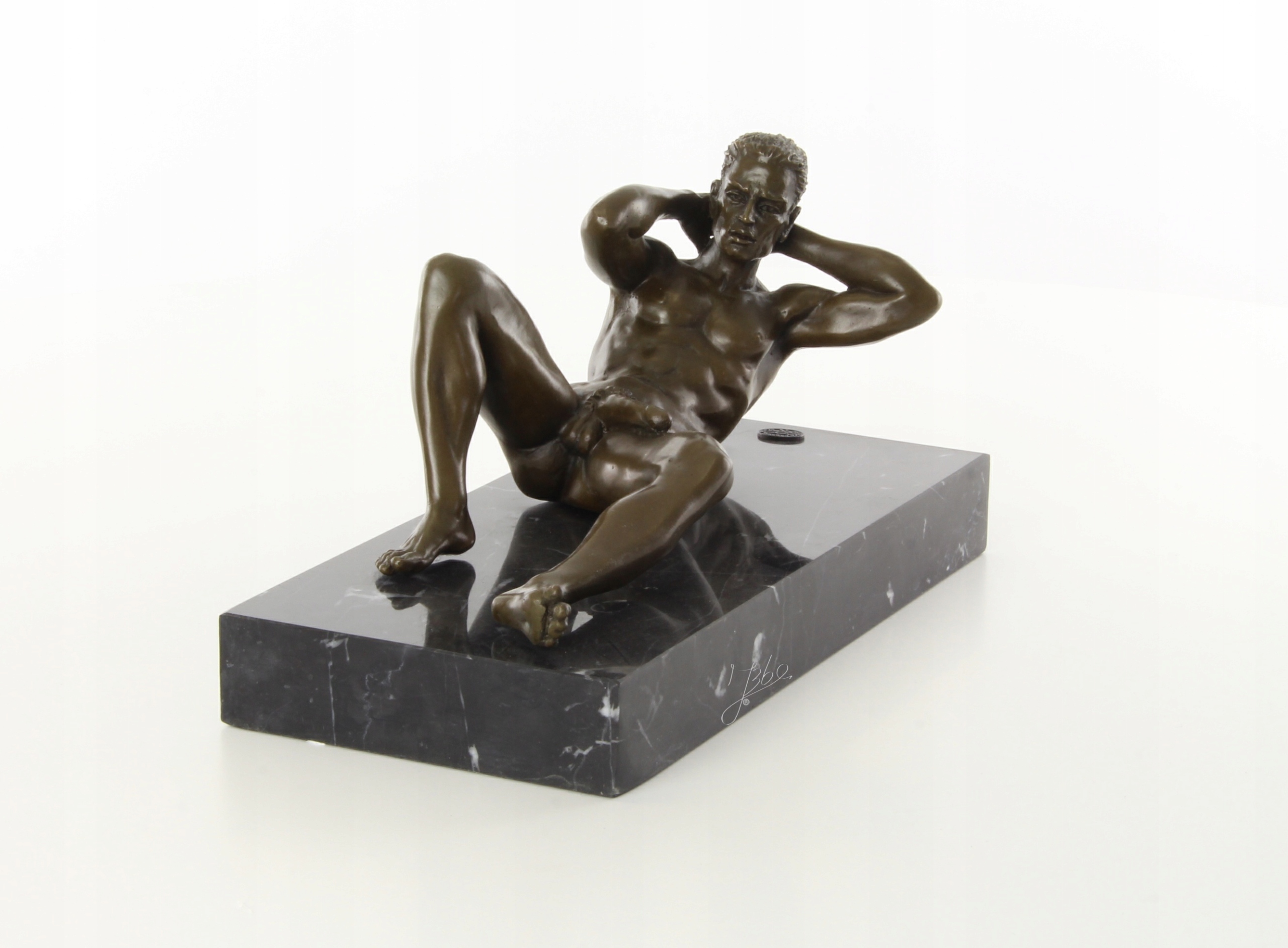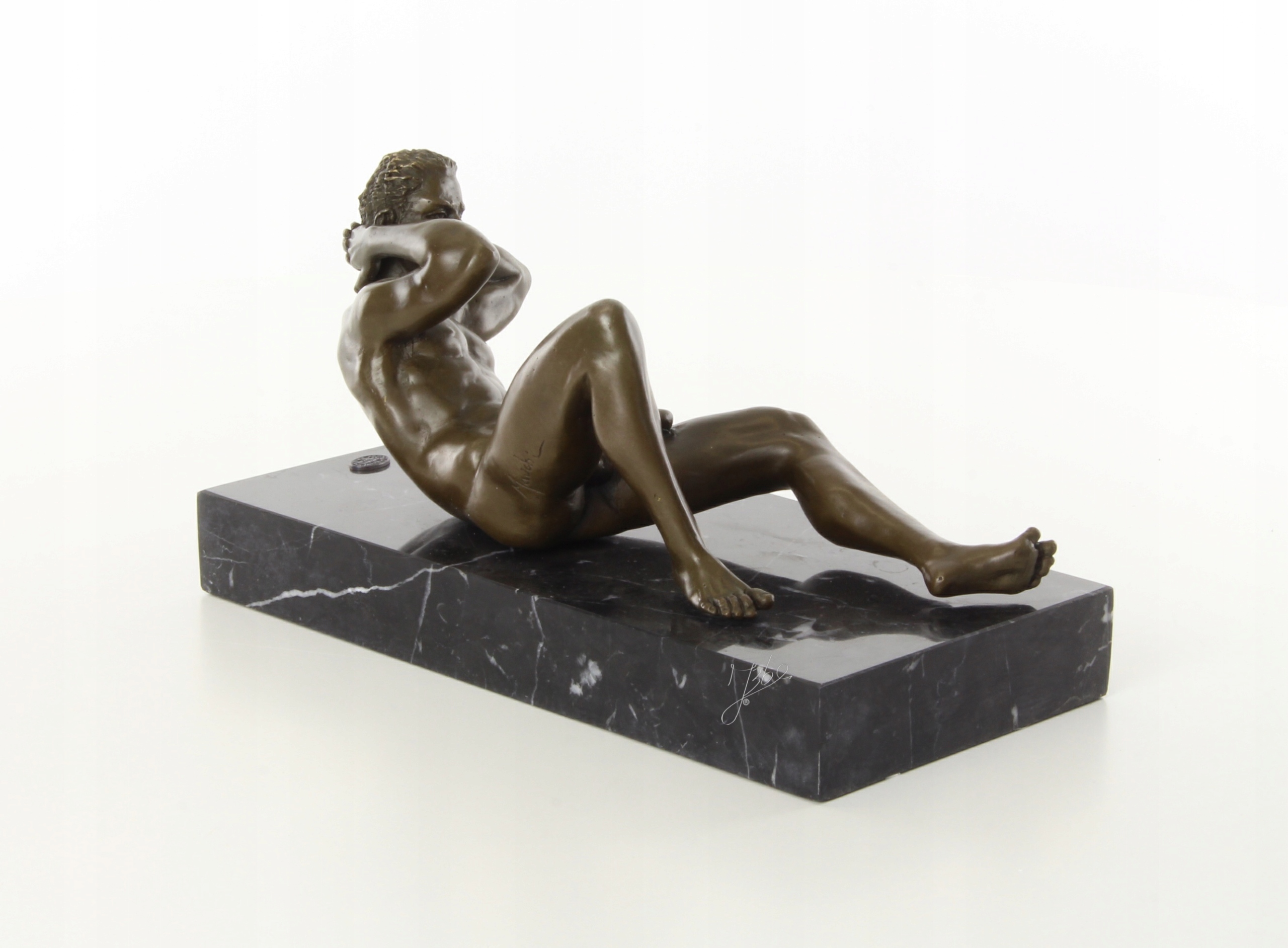 ФІГУРА ОГЛЕНОГО ЧОЛОВІКА КОРИЧНЕВО - БРОНЗОВА СКУЛЬПТУРА