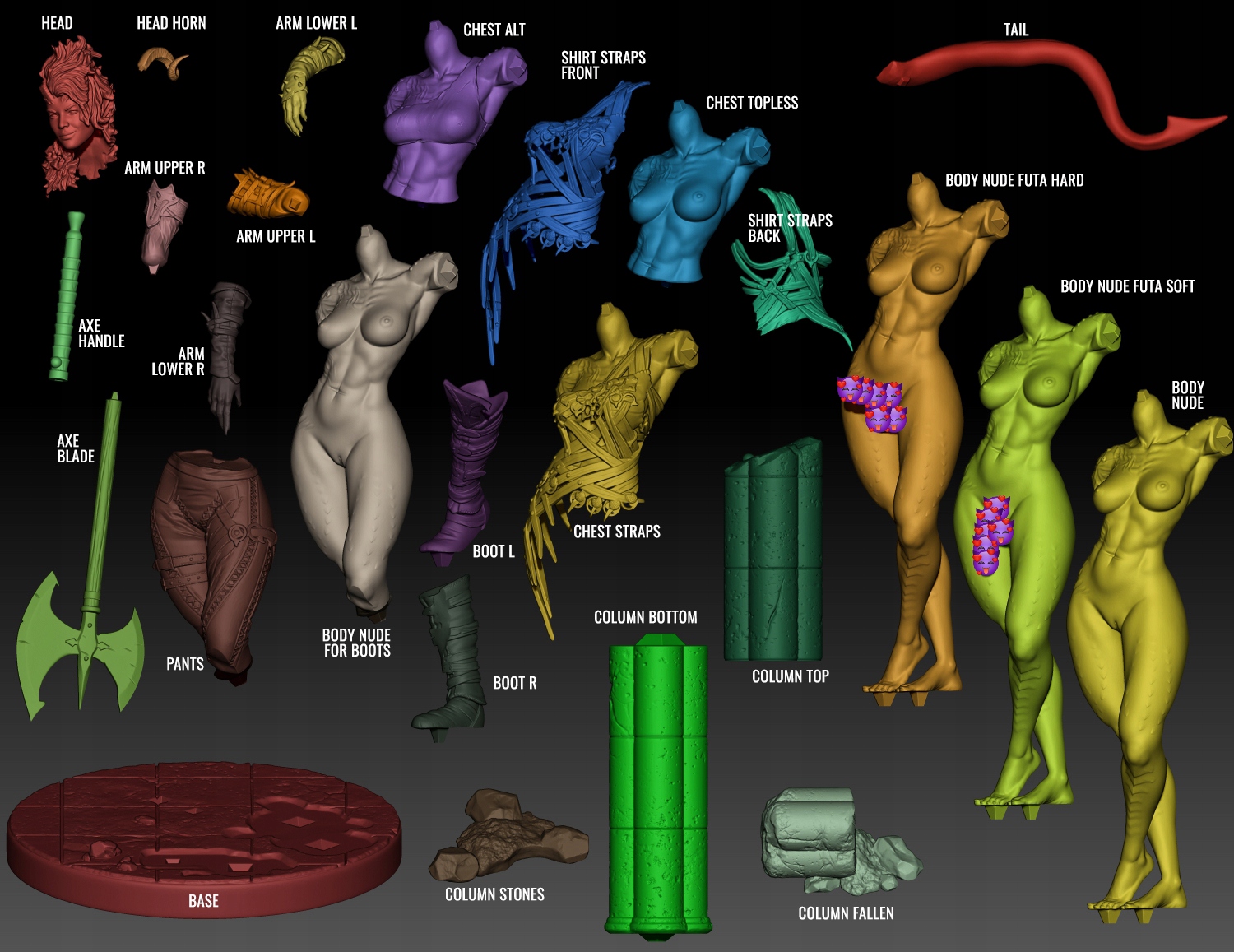 Статуетка надрукована СІРИМ кольором, розділена на частини (як на малюнку нижче) для легко пофарбувати перед складанням.