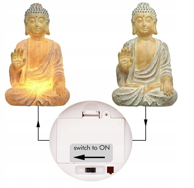 Керівник освітлення (перемикач) розташований у нижній частині Будди.