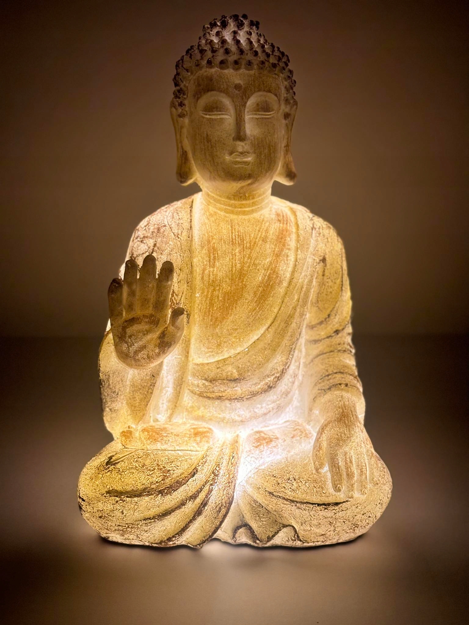 Велика статуя Будди зі світлодіодним освітленням для східного декору. Живлення від 3 батарейок ААА (не входять в комплект)