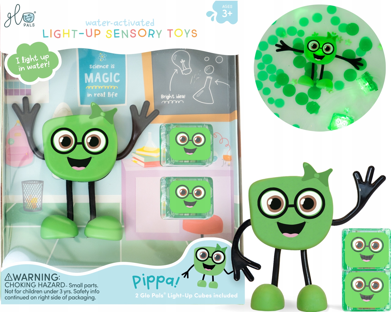 Піппа - найменша з приятелів Glo Pals, соковитого зеленого кольору. Він носить окуляри і любить читати. Після вечірнього купання він із задоволенням почитає одну чи дві історії разом.