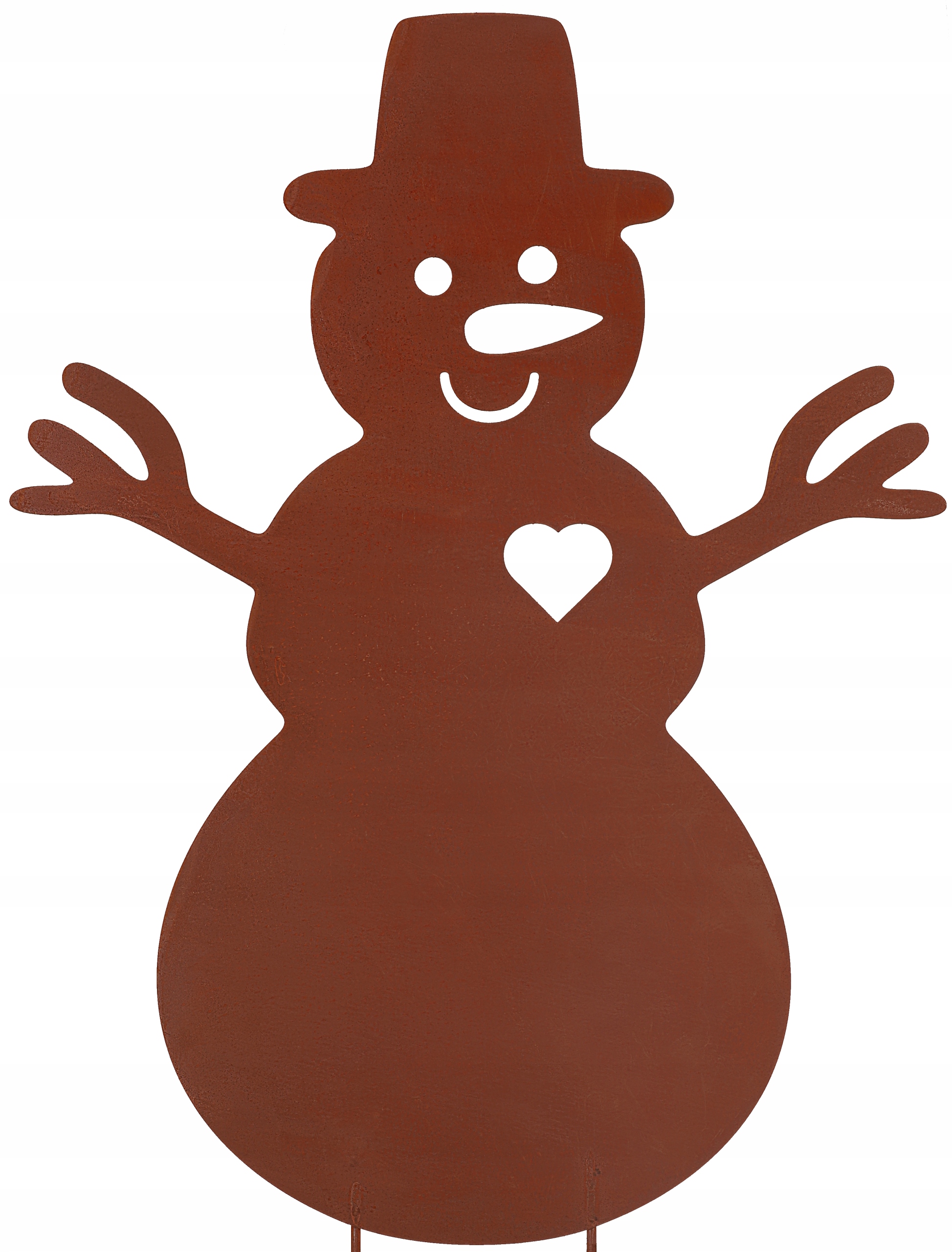 Шукаєте оригінальну прикрасу для саду? Спечений з листового металу сніговик на паличках стане вишуканою прикрасою в новорічні свята. Він прикрасить ваш сад, балкон, терасу і навіть простір біля ялинки. Однак найкрасивіше він буде виглядати поруч із зеленими хвойними деревами або поруч із садовою ялинкою, прикрашеною вогнями. Виділяйся серед сусідів унікальною прикрасою у вигляді сніговика, випеченого з листового металу!