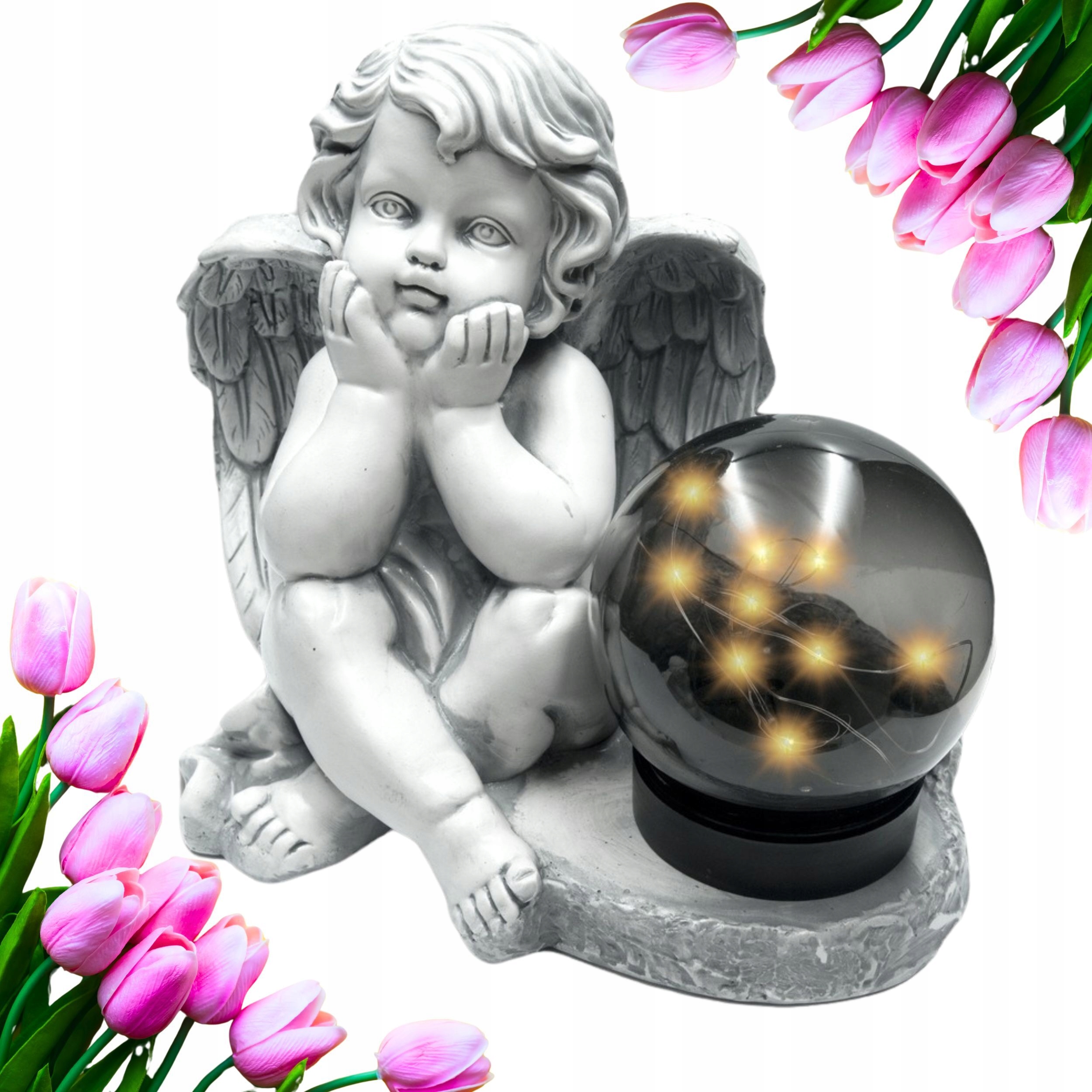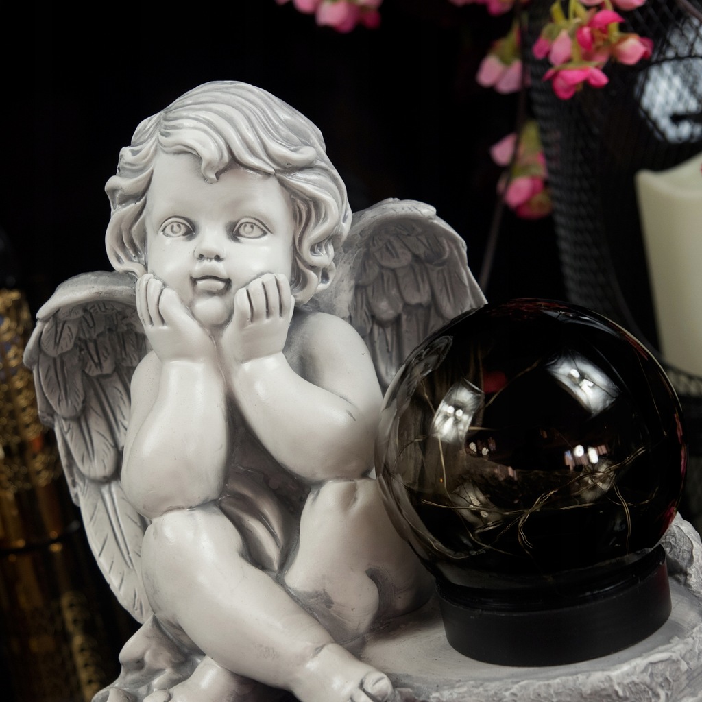 ➡ декоративна гіпсова статуетка, надгробний камінь з світлодіодним світильником, упакованою ангелом