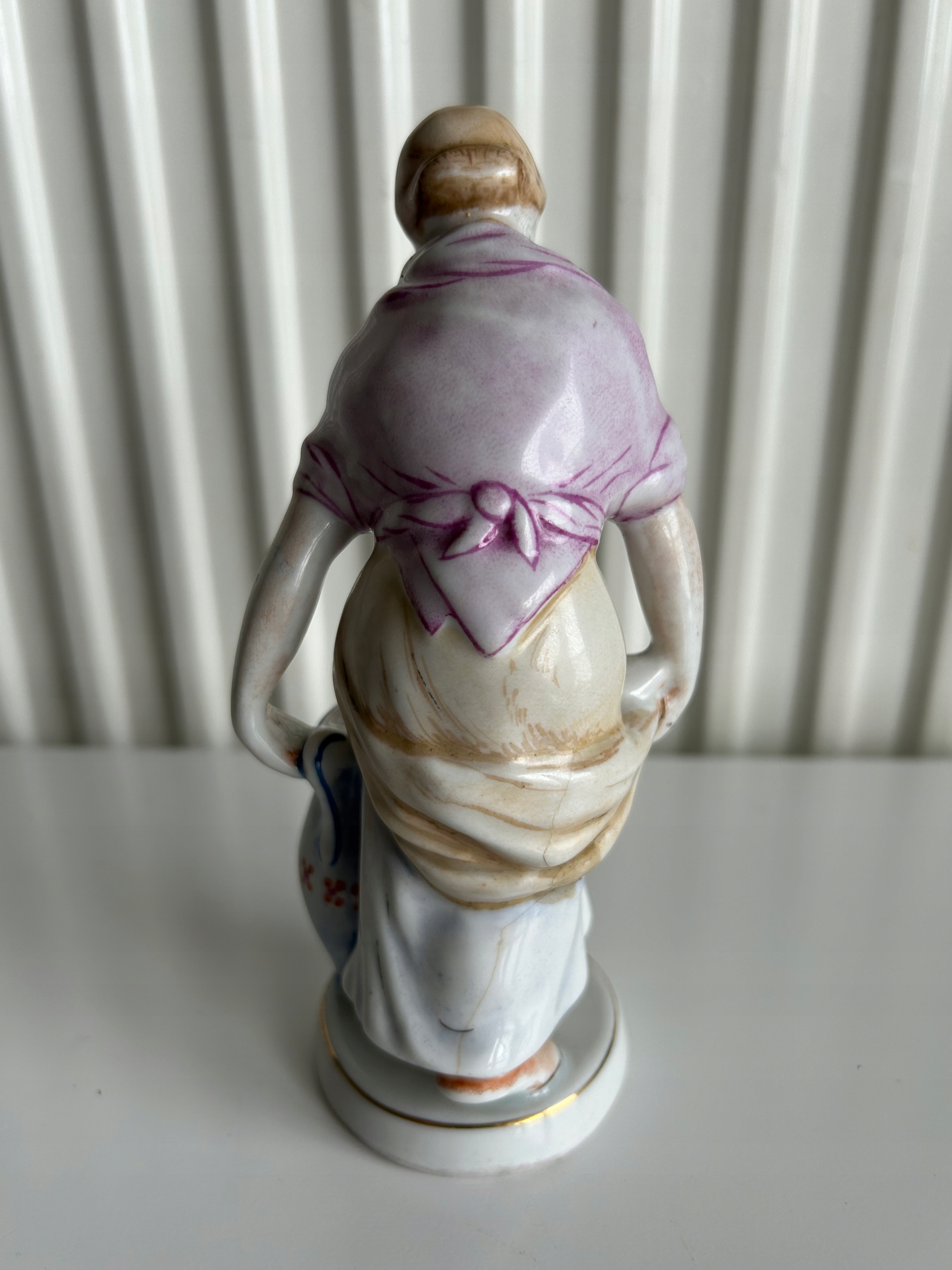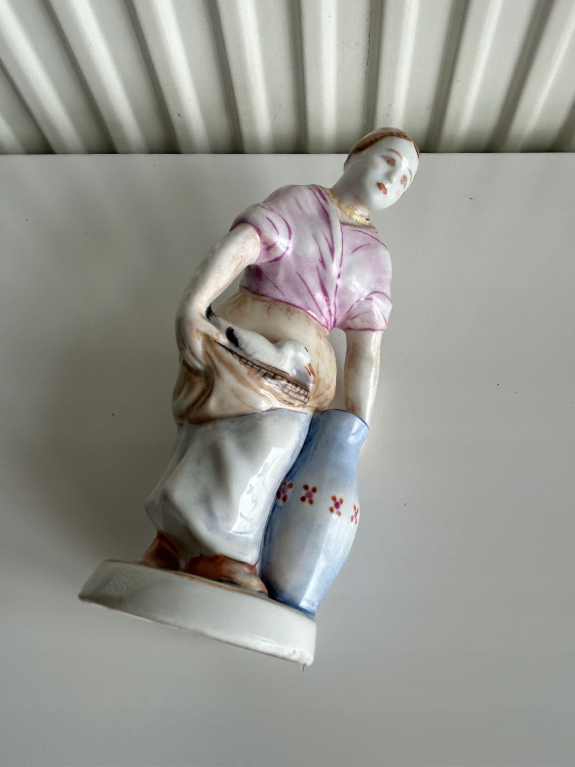 Фарфорова статуетка із зображенням жіночої фігури з гускою та глечиком. Ручний розпис. Продукт порцелянового заводу в Ходзежі