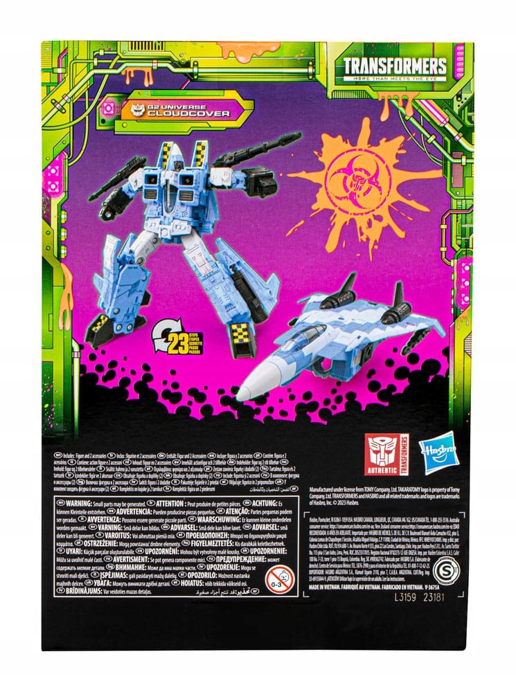 Чудова фігурка Cloudcover (G2 Universe) від Hasbro з лінії Transformers Generations (Legacy Evolution Voyager Class). Ця фігурка-трансформер має приблизно 18 см заввишки та має функцію реактивного перетворення (у 23 кроки). У набір входять змінні аксесуари для персонажів. Це оригінальний продукт, виготовлений за повною ліцензією бренду.