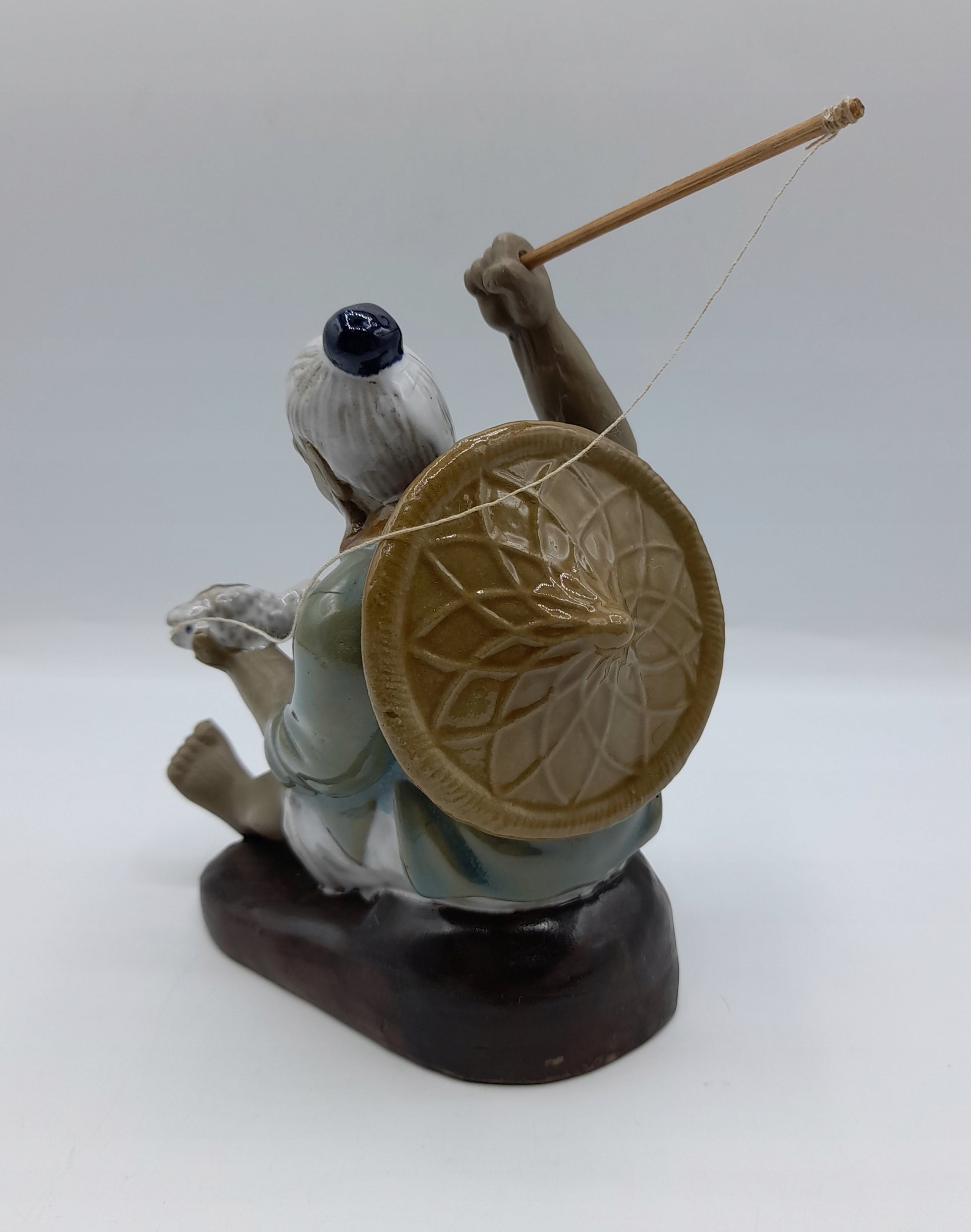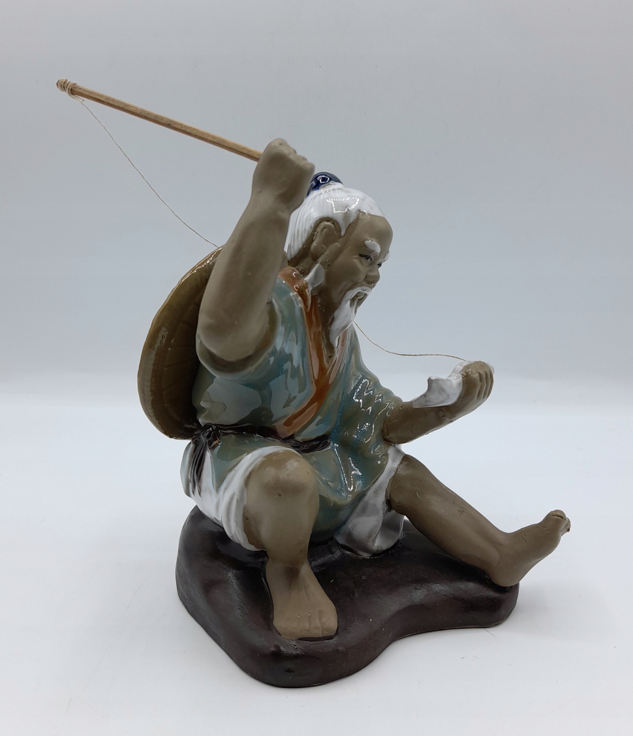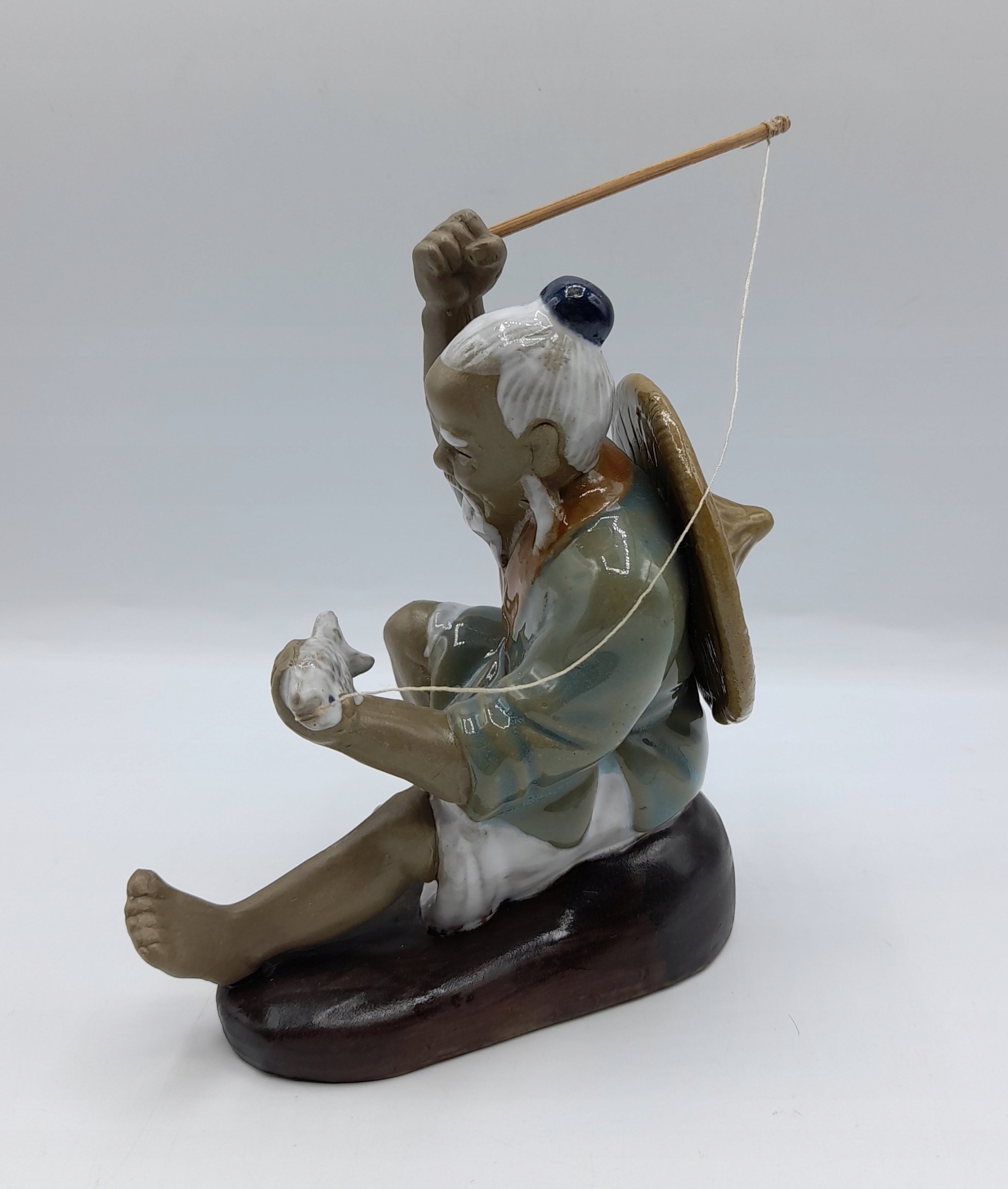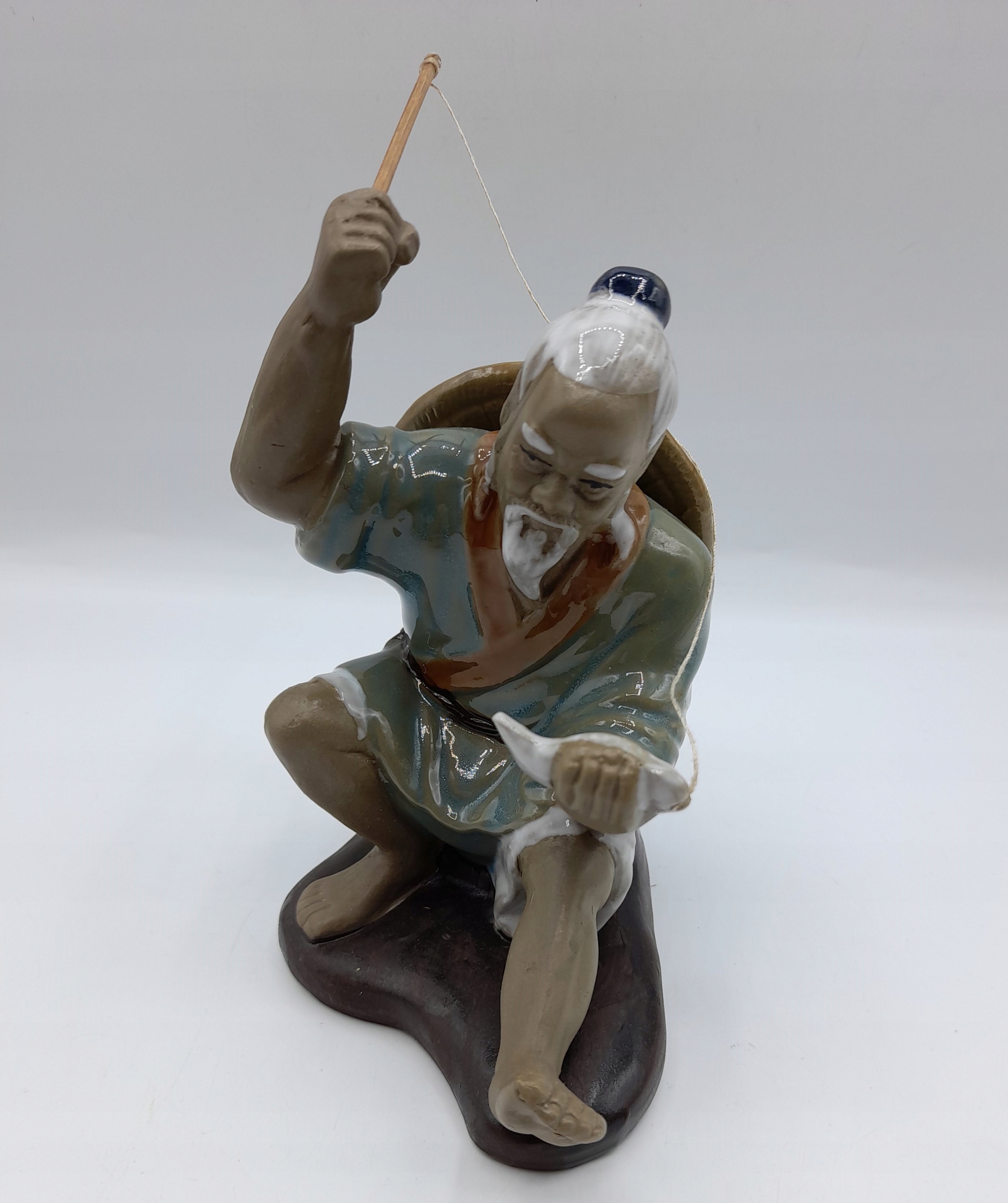 фігурка, яку також називають "гудманом грязі Рибак риболовля риболовлі риболовлі риболовлі риболовлі риболовлі риболовлі риболовлі риболовлі, виготовлені з глини/цих фігурів, відомі або фігури з Blota/з’являються від центерів, що знаходяться з центерів, і з центерів, що знаходяться з центерів, і з центерів, що мають центри Регіон Ванцзян у провінції Гуандун в Китаї. Вони були вироблені з кінця 19 століття до середини ХХІ століття. Всі статуетки були вручну -з легкої, темної або червонуватої глини. Кожен гуддим був розписаний вручну з низькотемпературною свинцем у жовтому, синьому або зеленому глазурі з випадковим використанням білого або коричневого. Обличчя, руки і ноги залишалися безглуздими, щоб виявити природний колір грязі. Деталі дивовижні, особливо навколо обличчя, що завжди дуже реалістично. Через те, що всі вони були зроблені вручну, немає двох однакових статуетків !!!
