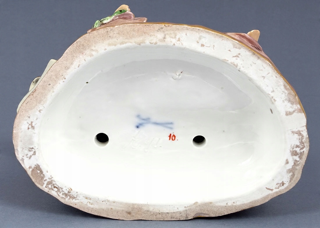 Знак майсенської мануфактури, що використовувався в 1850-1924 роках, і цифри «A41» і цифра «10», натиснуті на масі червоним кольором.