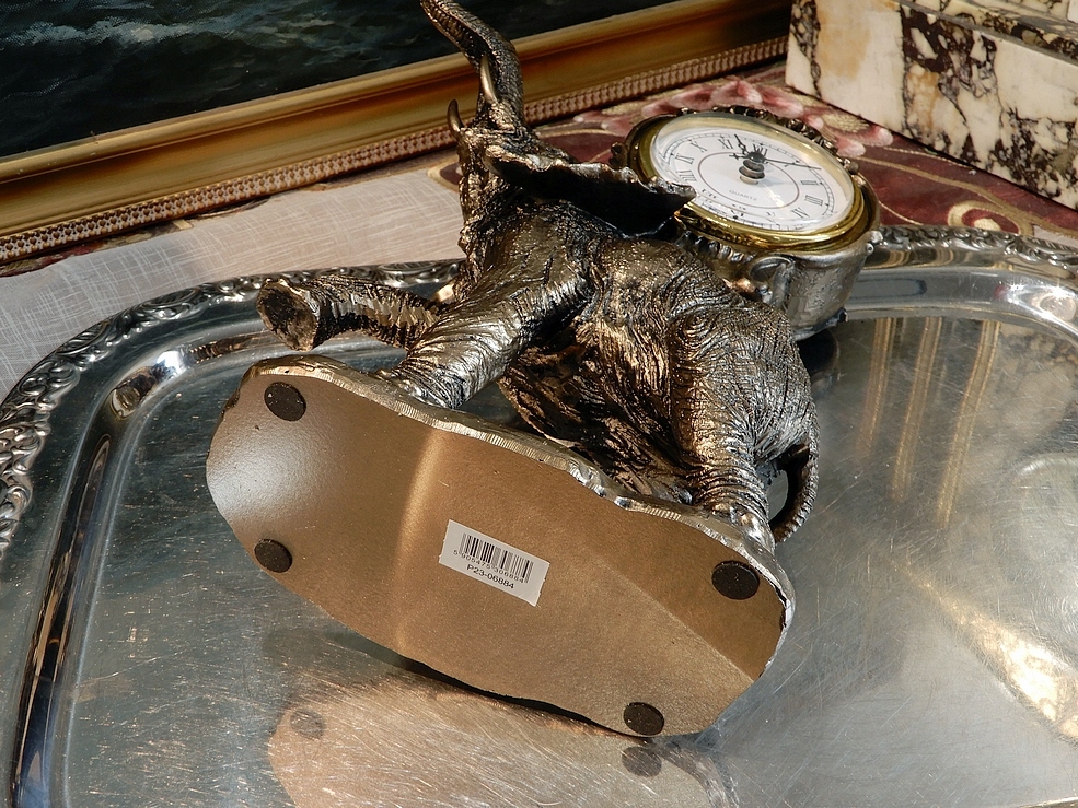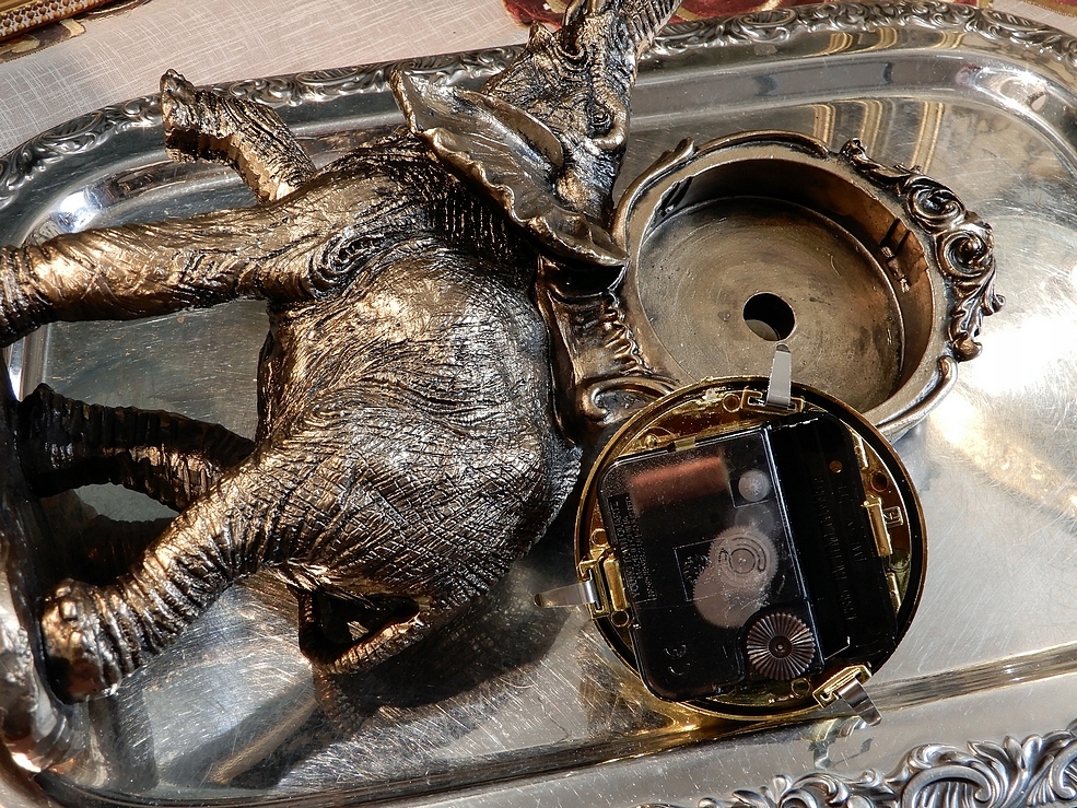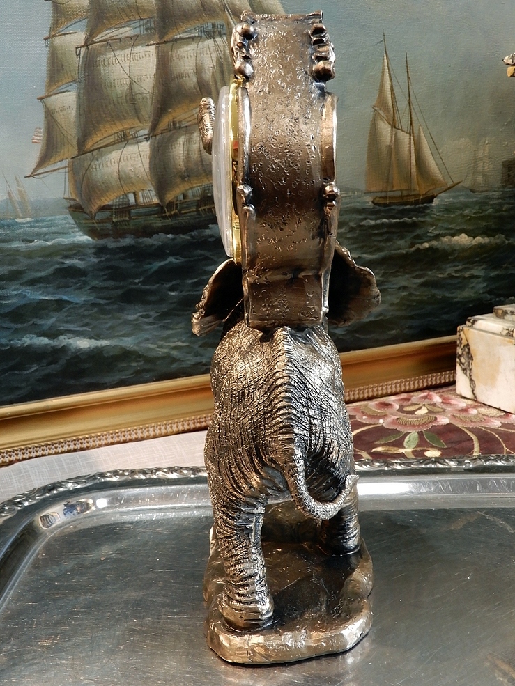 ФІГУРКА СЛОНА З КВАРЦОВИМ ГОДИННИКОМ ПОВЕРТАЄТЬСЯ ІЗ ЩАСЛИВИМ ПІДНЯТОМ ТРУБИ