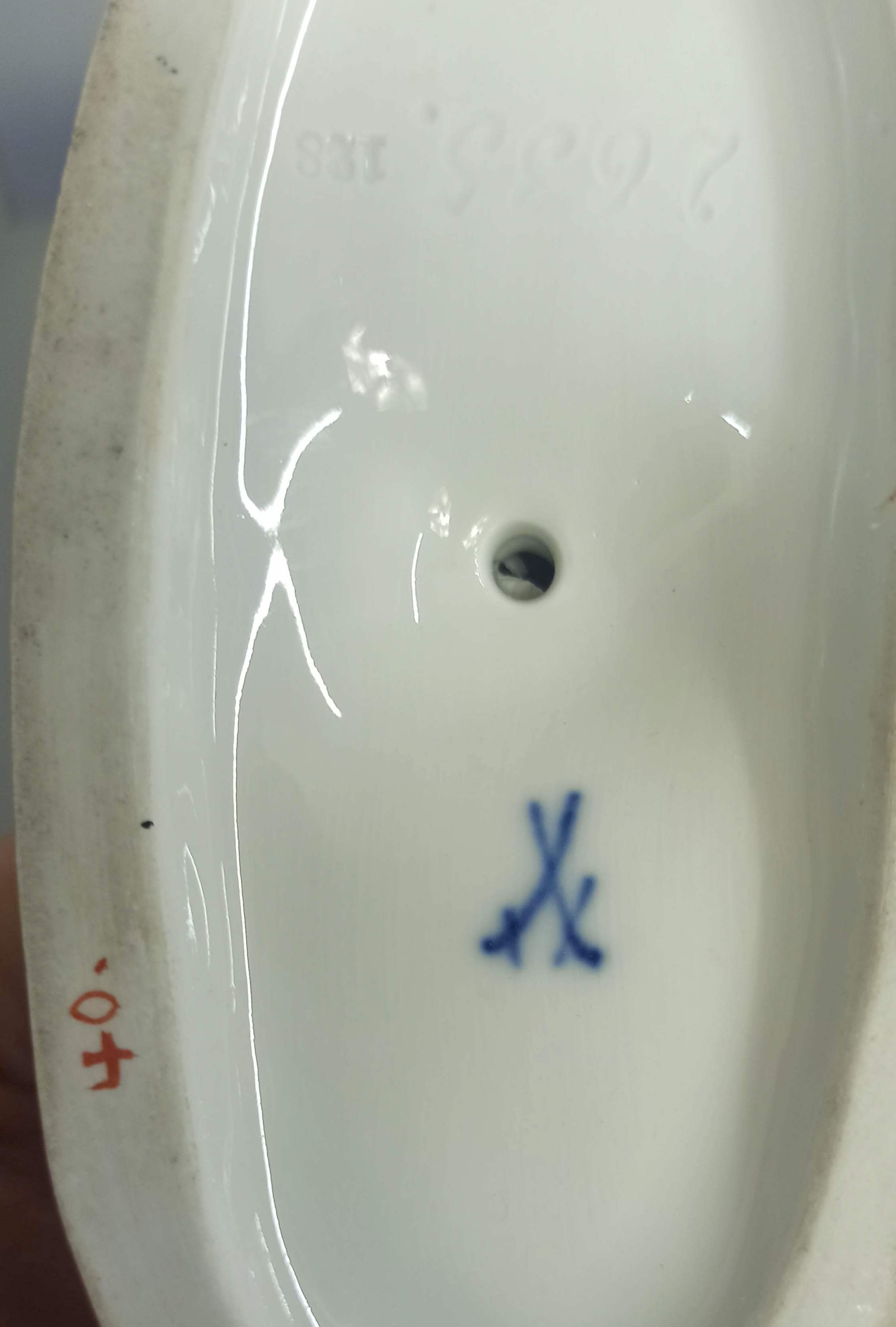 Це чудова статуетка вершника на жеребці, виготовлена Майсеном у 19 столітті. Фігурка розписана вручну, ідеально змодельована і саме те, чого ми очікуємо від найкращого виробника. Статуетка у відмінному стані. Фігура позначена під глазур'ю синім знаком перехрещених мечів, а також звичайними штампованими знаками, включаючи номер моделі 2635 і номер художника.