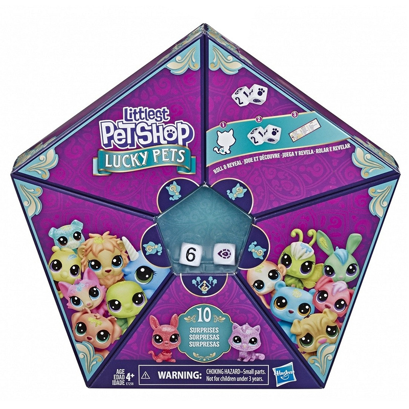 Lucky Pets - це набір, який поєднує в собі азарт відкриття з чудовою атракцією - милими тваринами з Littlest Pet Shop серії. Мультиупаковка містить фігурки та аксесуари, які розширять вашу колекцію Littlest Pet Shop! У наборі аж 10 сюрпризів - 3 тварини в класичному масштабі, 1 тварина в маленькому масштабі, 2 кубики, 4 амулети з S-подібними гачками, кліпса і путівник по колекції.