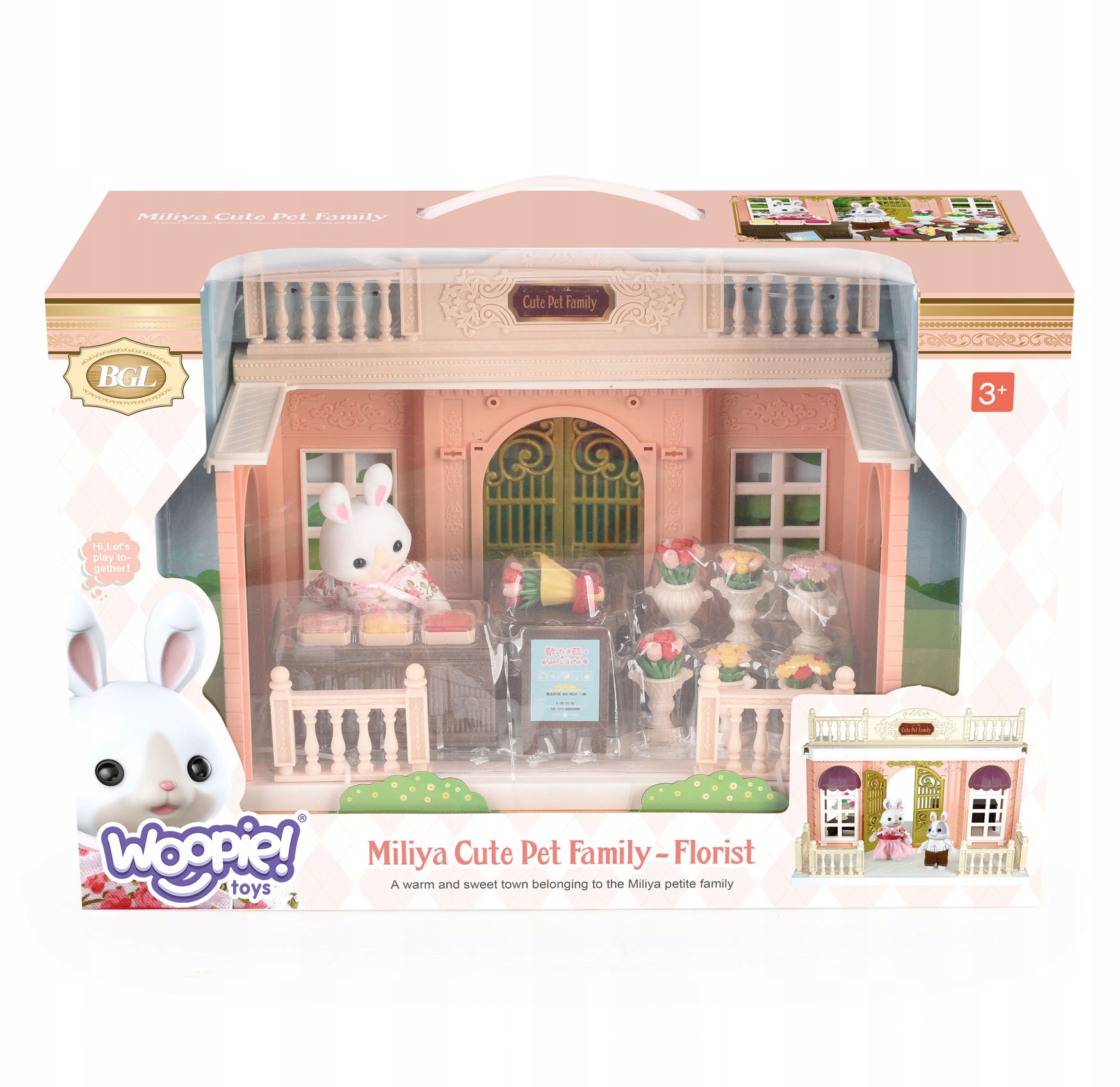 WOOPIE Rabbit Family Flower Shop Dollhouse + Figurine