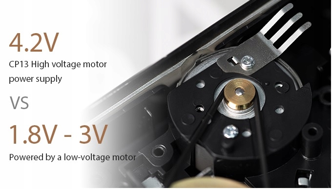 Двигун CP13 живиться від джерела живлення високої напруги 4,2 В, що трохи вище, ніж 1,8 або 3 В, які зазвичай є в сучасних касетних програвачах. Це джерело живлення працює з ланцюгом стабілізації швидкості двигуна, що збільшує опір двигуна, коли це необхідно для забезпечення стабільної швидкості руху, що зменшує небажані зміни висоти, а також дозволяє CP13 підтримувати ширший діапазон типів касет.