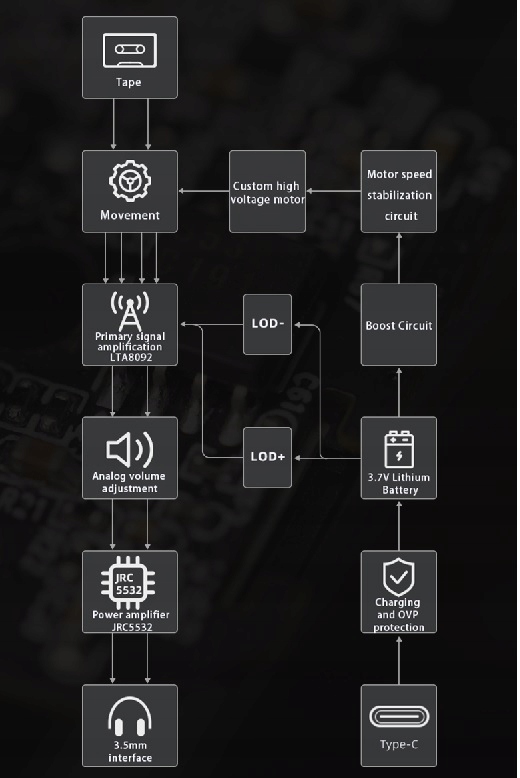 Голова є одним із ключових компонентів кожного магнітофона, тому ми використовуємо високоякісні магнітофони для CP13, навіть якщо вони дорогі. Крім того, ми суворо контролюємо спосіб виготовлення CP13, щоб забезпечити мінімальну різницю у виході між лівим і правим каналами, набагато меншу, ніж у звичайних касетних програвачів сьогодні. Магнітна головка також має потовщену кришку, яка краще захищає головку від зовнішніх перешкод. Це також значно зменшує знос головки під час відтворення, дозволяючи йому працювати довше.