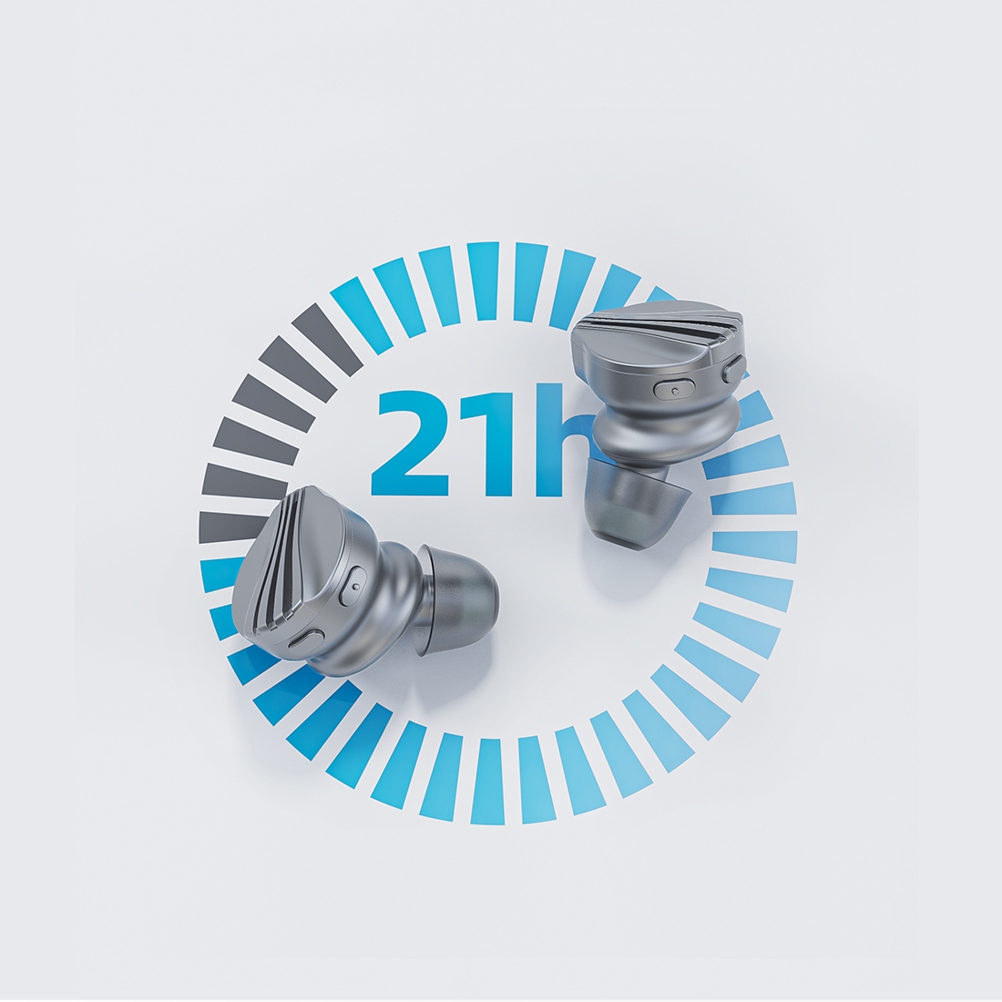 - Час роботи акумулятора: приблизно 21 год = 7 год. (навушники) + 14 год. (зарядний футляр)