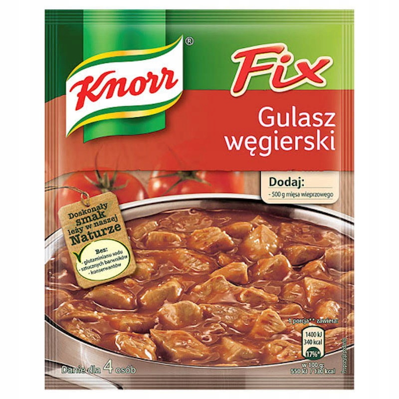 Композиція з овочів, трав і спецій для приготування угорського гуляшу. Виготовляється з вирощених на сонці перців, ретельно висушених і вміло поєднаних зі спеціями та травами Перевірте на www.knorr.pl