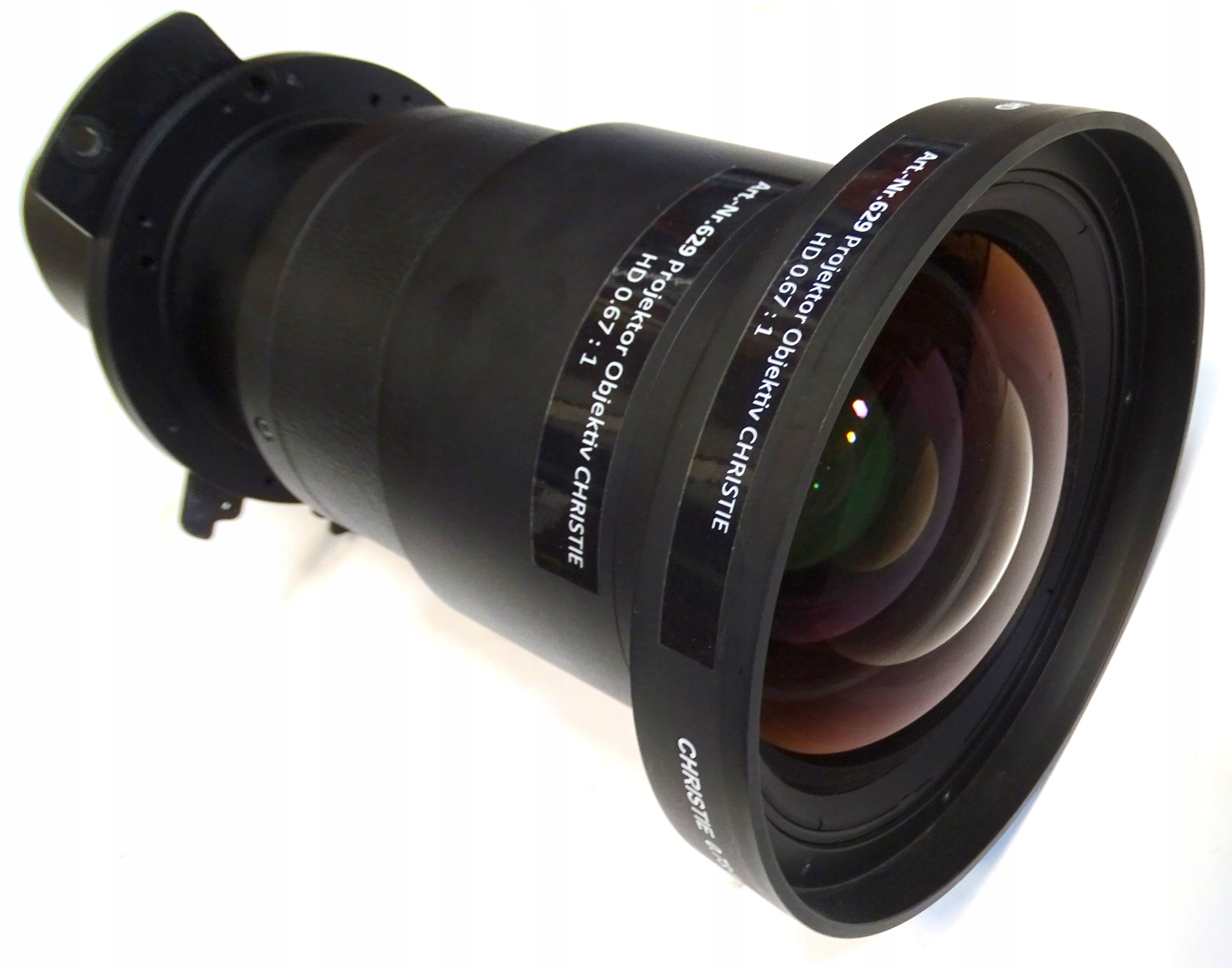 Цей стабільний об’єктив забезпечує коефіцієнт фокусування 0,67:1 при використанні з 3 DLP 1080 HD-проектори Christie із 3 мікросхемами та 0,76:1 із 3-чіповими DLP SXGA+ проекторами.