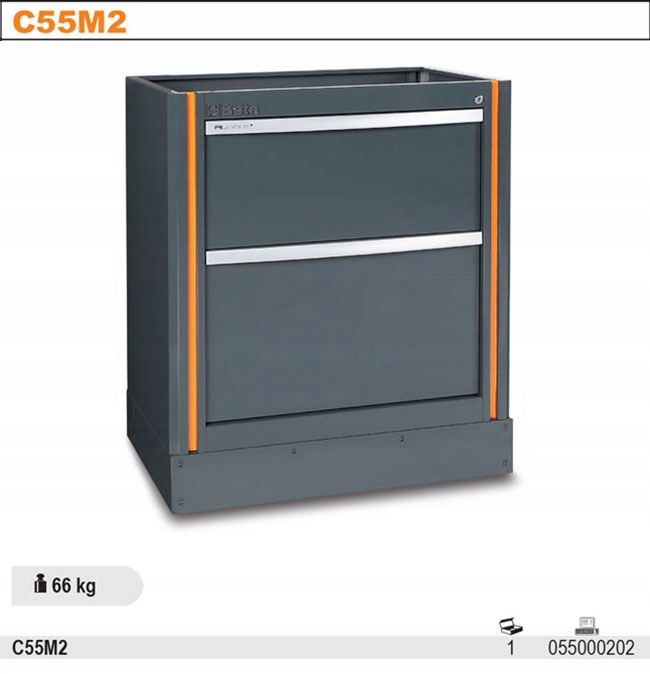БЕТА-СТАЦІЙНА СИСТЕМА RACING C55 МОДУЛЬ, З ДВОМА ЯЩИКАМИ, ВИГОТОВЛЕНА ЗІ ЛИСТОВА СТАЛІ, ПОФАРБОВАНА, СІРИЙ RAL 7016 З ПОМАРАНЧЕВИМ ПОКРІБЛЕННЯМ, ПОРОЖНИЙ, 797X474X940 ММ