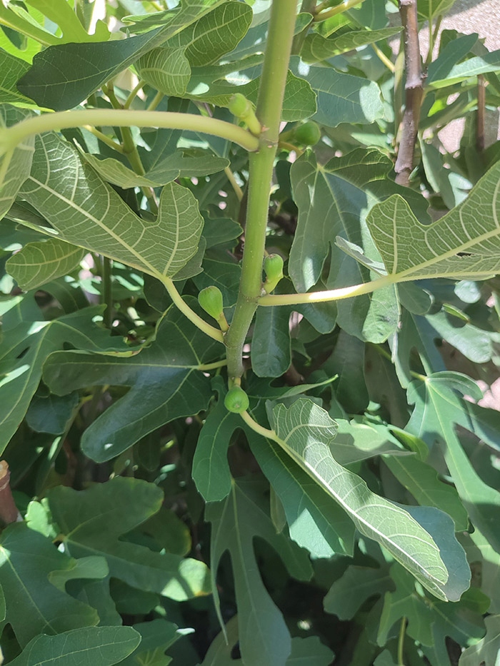 Інжир не цвіте. З цьогорічних пагонів також виходять плоди над листям. Фото зроблено 11 липня 2023 року.