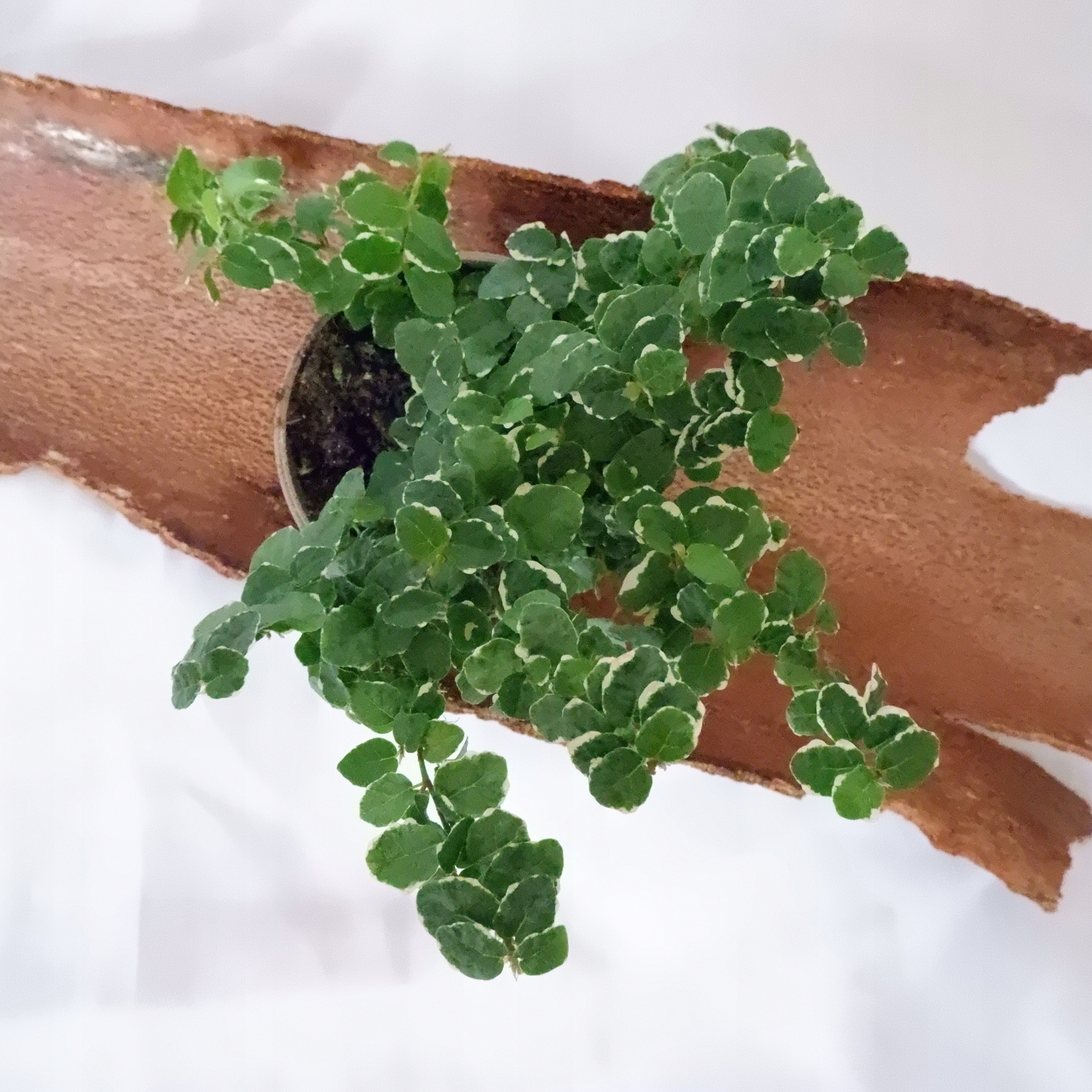 Фікус пуміла - вічнозелена дерев'яниста тропічна ліана з дрібними округло-яйцевидними листками, з білим нерівним краєм - у вигляді варієгати, піднімається на опори за допомогою маленьких корінців і легко вкорінюється, лежачи на землі.