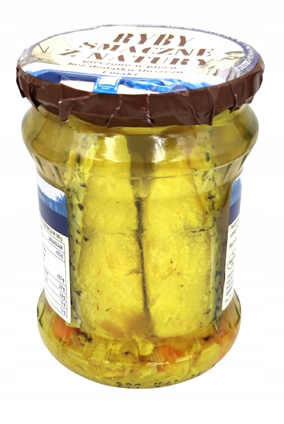 Склад: холодець 56% (вода, оцет спиртовий, морква, цукор, сіль, желатин свинячий, цибуля ріпчаста, суміш спецій)щука запечена 44% (філе щуки, сіль)