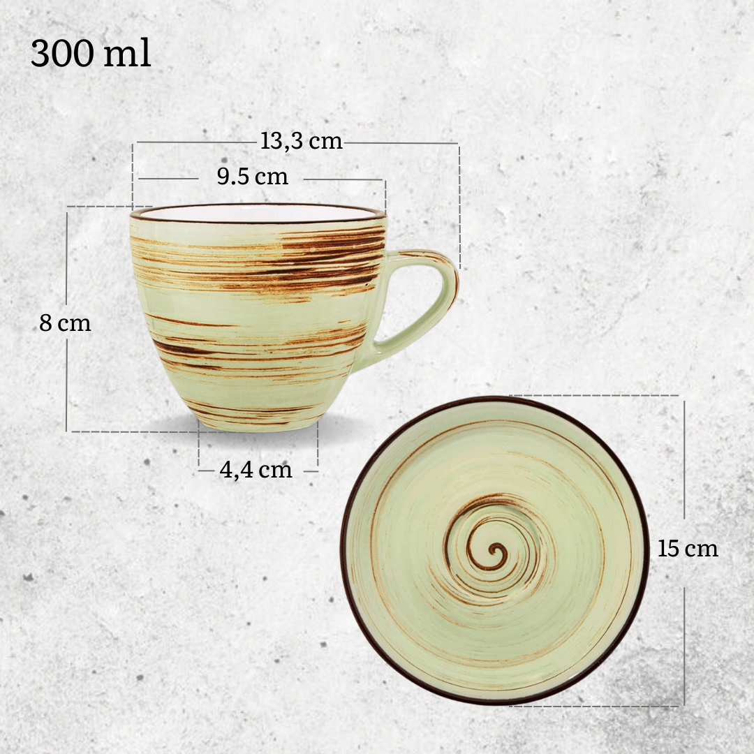 Filiżanka do herbaty 300 ml ze spodkiem 15 cm Wilmax PORCELANA PISTACJOWA