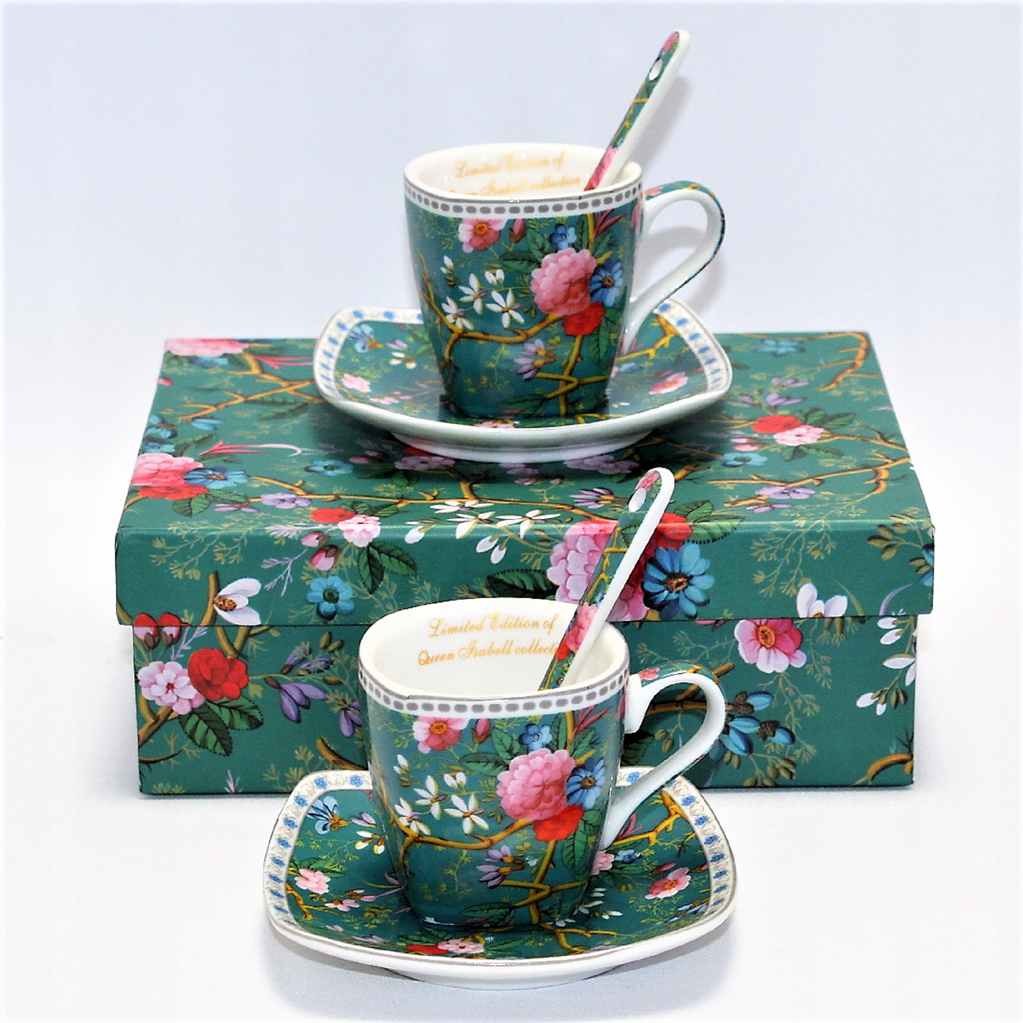 Чашки були випущені обмеженим тиражем для бренду Queen Isabell Collection і прикрашені барвистим орнаментом. квітковий мотив на зеленому фоні. Ця неймовірно красива колекція «Flower Meadow» ідеально підходить для любителів квітів і упакована в подарункову коробку, яка ще більше підкреслює красу чашок.