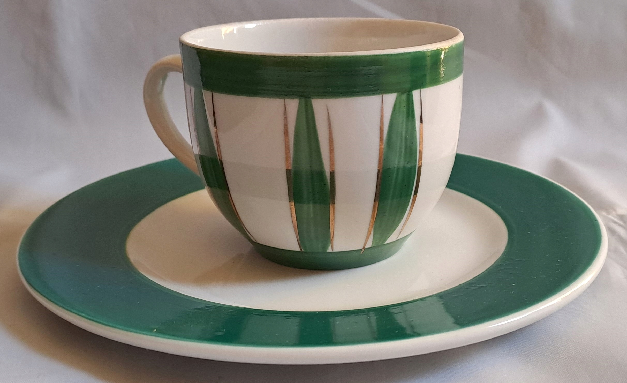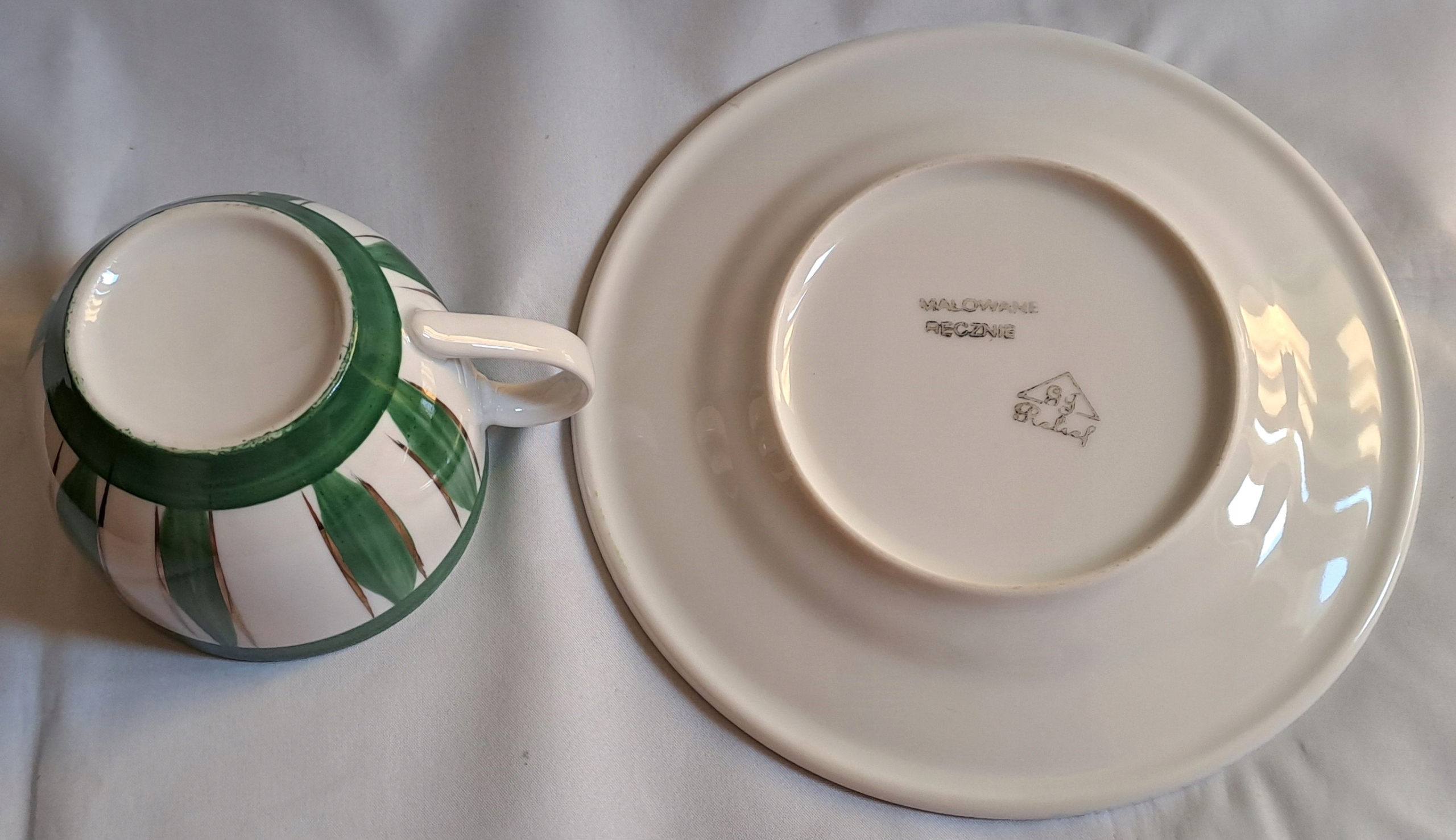 Filiżanka ze spodkiem malowane ręcznie Zielone wzory