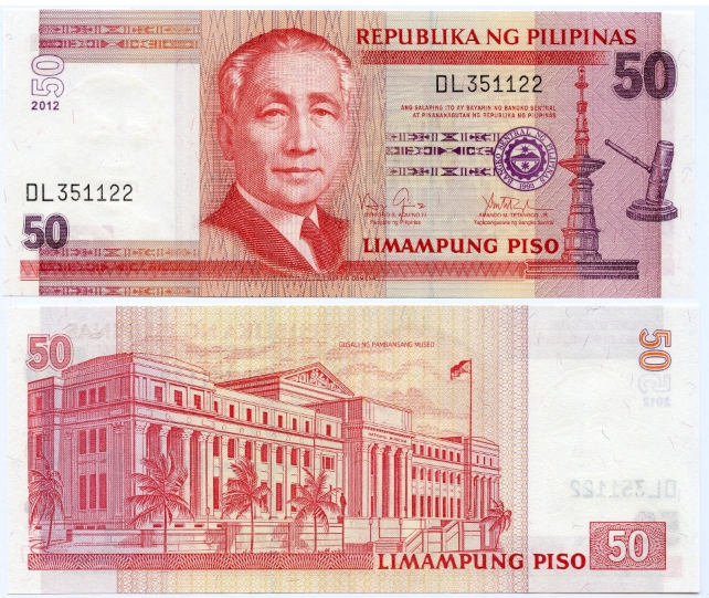 ФІЛІПІНИ 50 ПЕСО 2012 P-193d UNC Серхіо Осменя