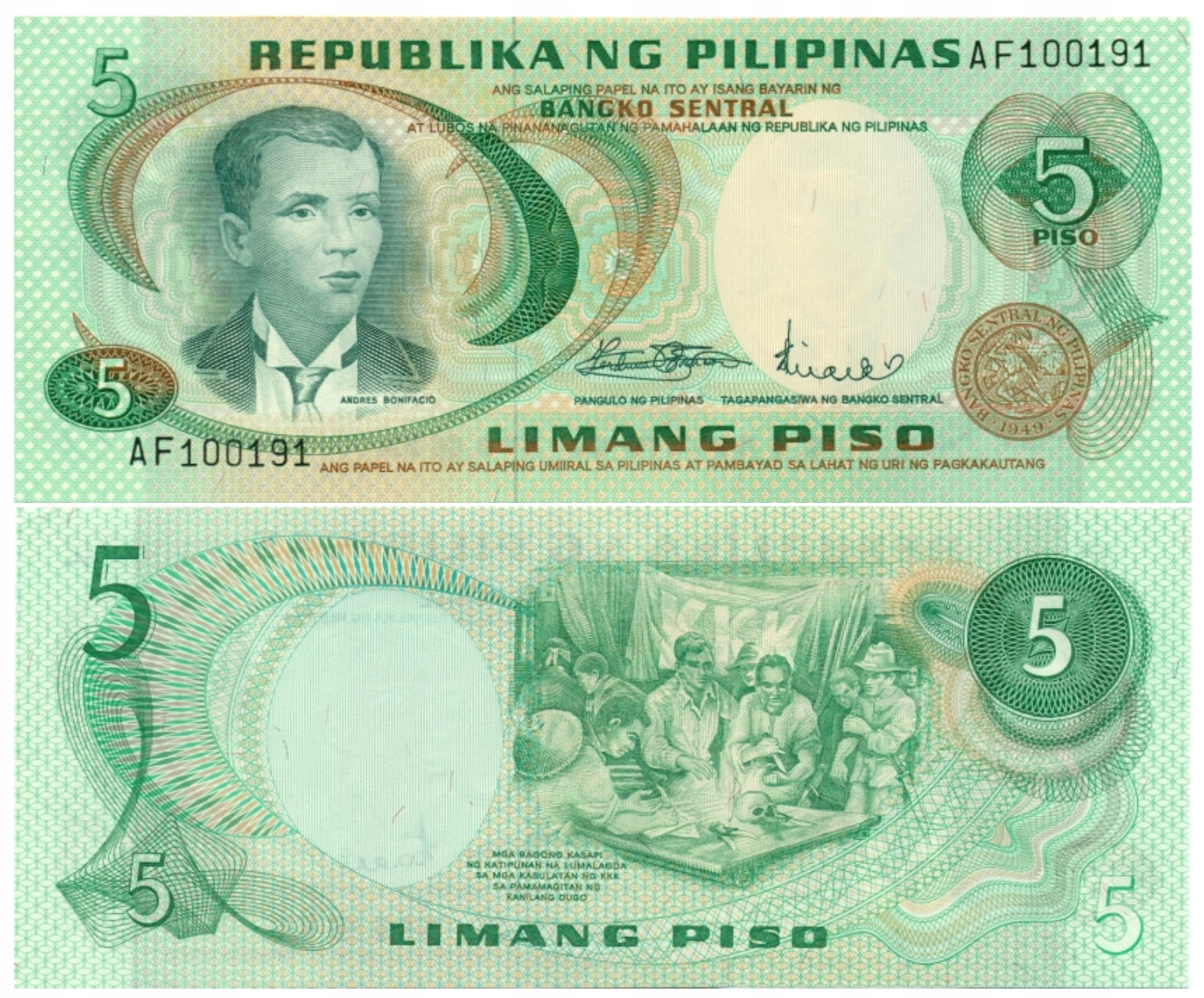 ФІЛІПІНИ 5 ПЕСО 1970 P-148a UNC, серійний номер банкноти може відрізнятися від зображеного на фото