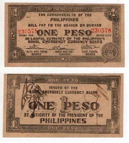 ФІЛІПІНИ ЯПОНСЬКА ОКУПАЦІЯ / БОХОЛ 1943 1 ПЕСО