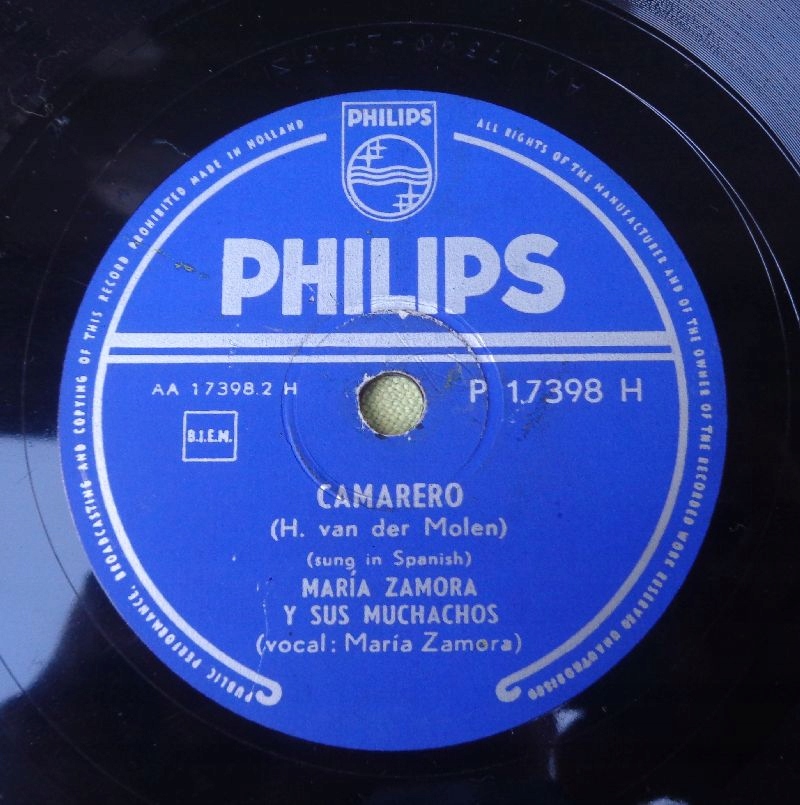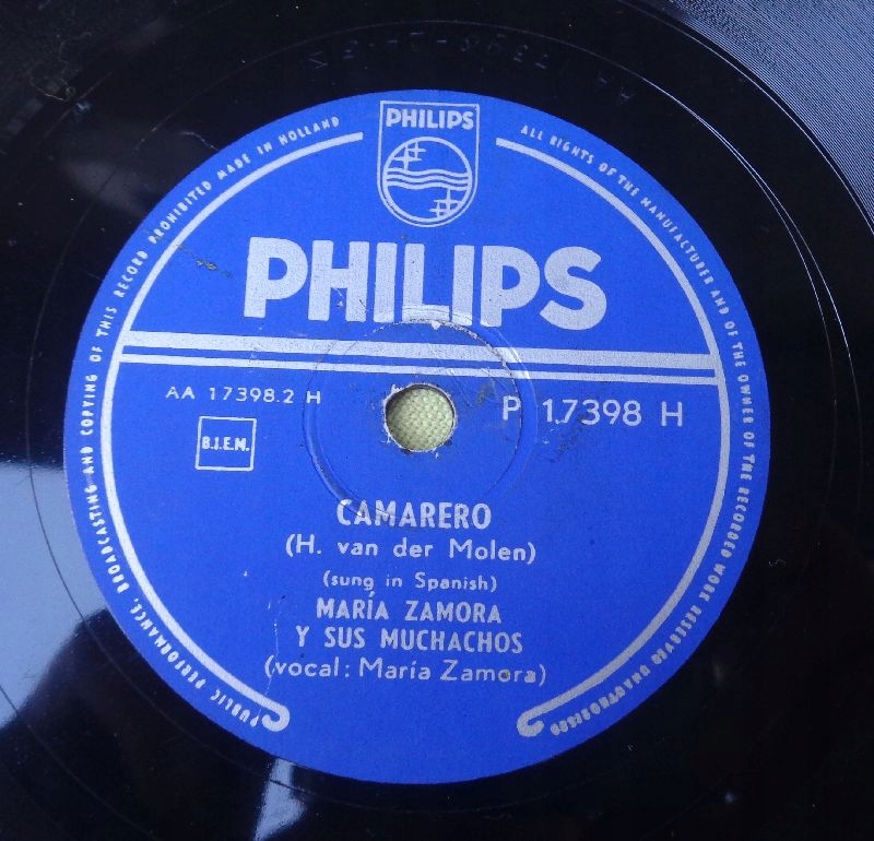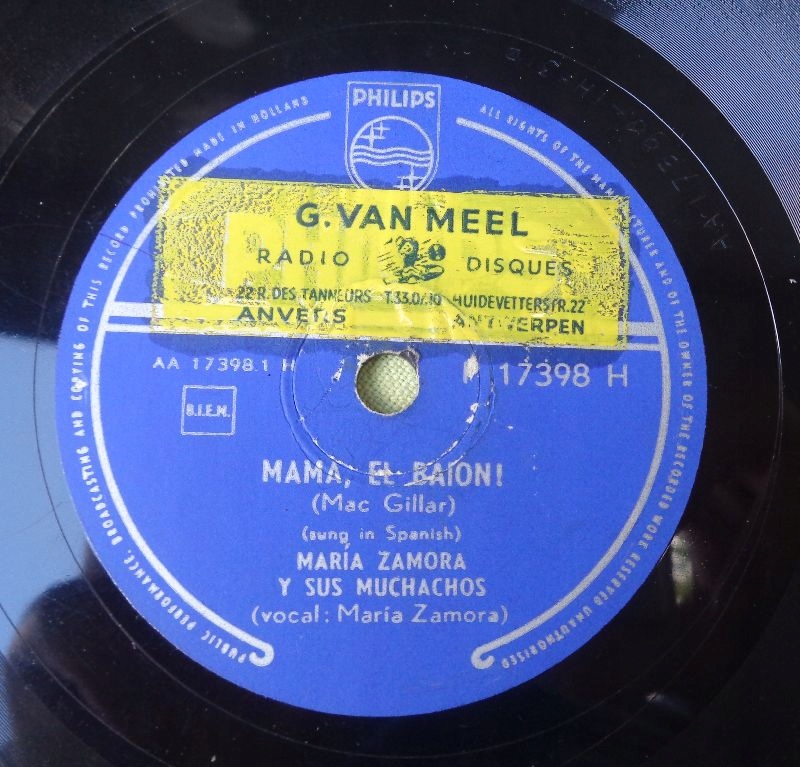 Цікава, цікава грамплатівка 1980-х років. Виставку створила компанія Philips. До альбому увійшли пісні Mama, El Baion Мака Гіллара та Camarero Ван Дер Молена. Експонат має оригінальні фірмові логотипи та підписи. Диск має невеликий дефект по краю, який видно на фото. Рекомендую всім.