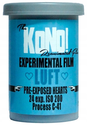 KONO! LUFT — це експериментальна кольорова негативна плівка, на якій були попередньо експоновані візерунки. На кожному кадрі цієї плівки будуть сині сердечка.