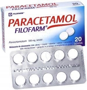 В упаковці 20 таблеток. Кожен з них містить 500 мг парацетамолу і допоміжні речовини. Дозування Парацетамолу Філофарм описано у вкладеній інструкції та має дотримуватися, якщо ваш лікар не порадить інше. Без консультації з лікарем препарат застосовувати не більше 3 днів. Ви також не повинні використовувати дозу вище рекомендованої. Передозування препарату або його занадто тривале застосування може призвести до пошкодження печінки та нирок.