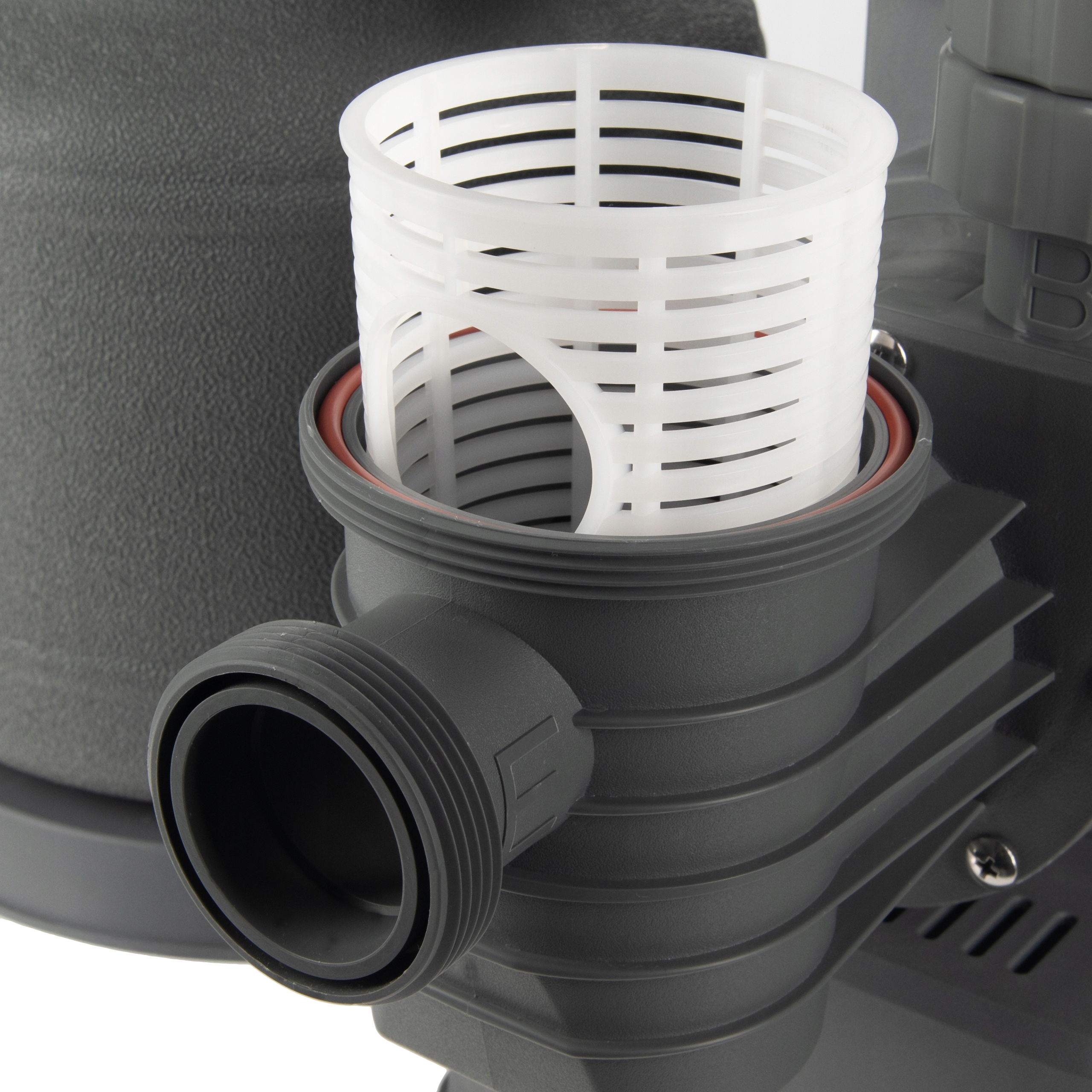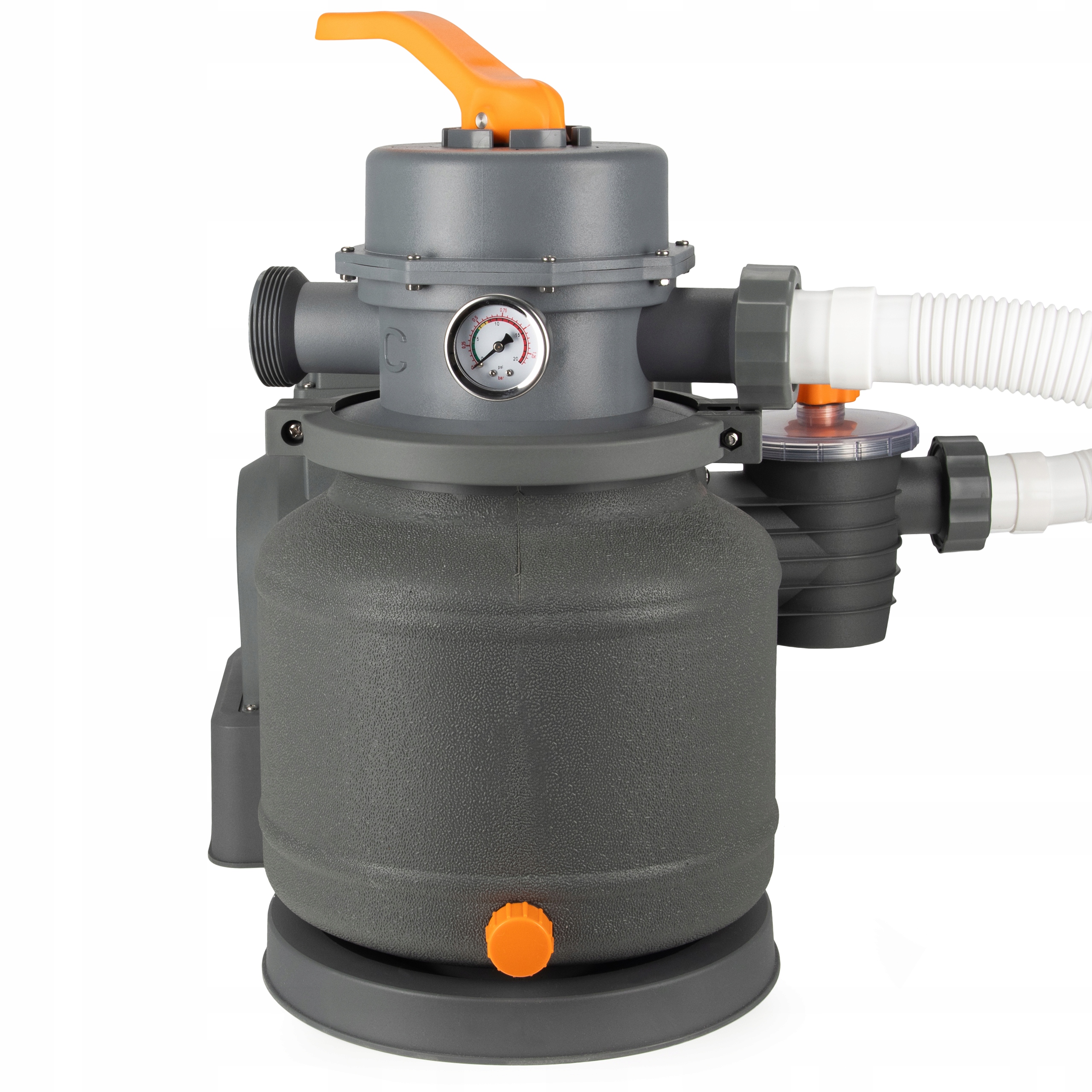 Ємність 8705 літрів на годину працюватиме з меншими та середніми басейнами. Доступна ціна - важлива перевага, яка з силою продукту робить його доступним для кожного бюджету. Операція насоса керується 6-градусним клапаном управління, який має функції: фільтрування, промивання, промивання, рециркуляція, вивільнення та вимкнення. Точні рекомендації можна знайти в інструкціях, що додаються до насоса.