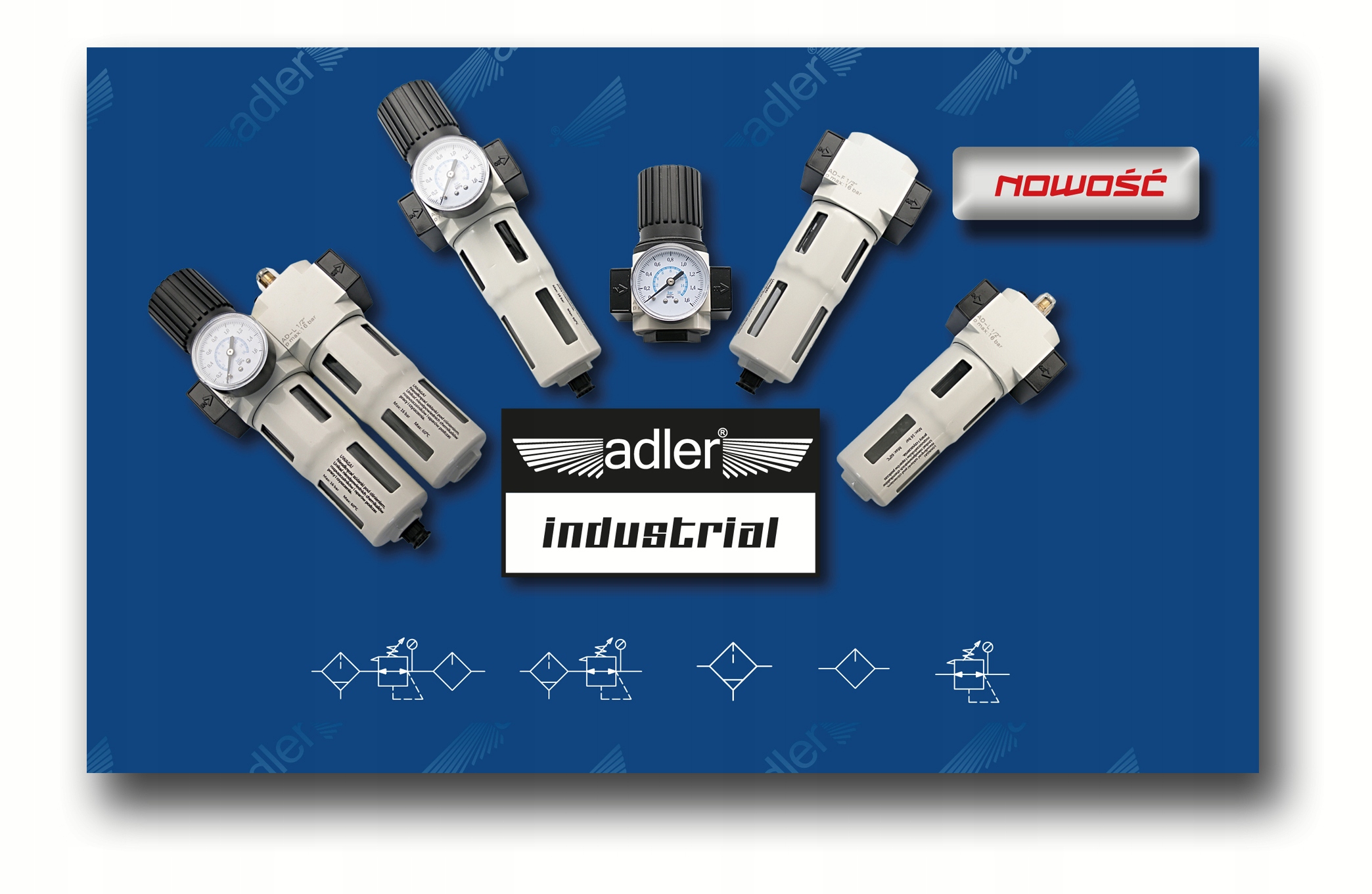 Лінія вузлів Adler Industrial відрізняється довговічністю та високою якістю. Монтажні блоки відлиті з високоякісного сплаву, ретельно оброблені і покриті порошковою фарбою, характеризуються високою стійкістю до тиску і можуть працювати в установках з тиском до 16 бар (інші вузли тільки до 12 бар). Фільтри забезпечують рівень фільтрації - 5 мкм. Через підвищений тиск фільтри довелося оснастити більш міцними ручними зливними клапанами. Точні діафрагмові редуктори з індикаторами тиску до 16 бар. Блоки мають технічні отвори, які дозволяють комбінувати їх з іншими елементами лінії або змінювати конфігурацію. Усі агрегати лінії Adler Industrial оснащені гвинтовими кронштейнами, що дає змогу кріпити на стіні.