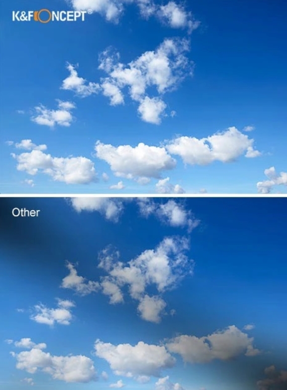 Фільтр K&F CONCEPT усунув несприятливий ефект «X» перетину окремих ступенів сірого фільтра. Завдяки цьому зображення, отримане за допомогою фільтра, залишається незайманим у всьому діапазоні фільтра.