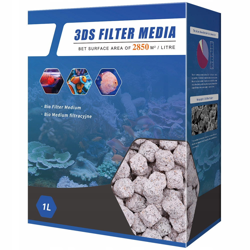 3DS — це продукт, виготовлений із кераміки з дуже великою поверхнею, пористою структурою та нейтральним рН, що сприяє розвитку корисних мікроорганізмів, таких як нітрифікуючі та денітрифікуючі бактерії.