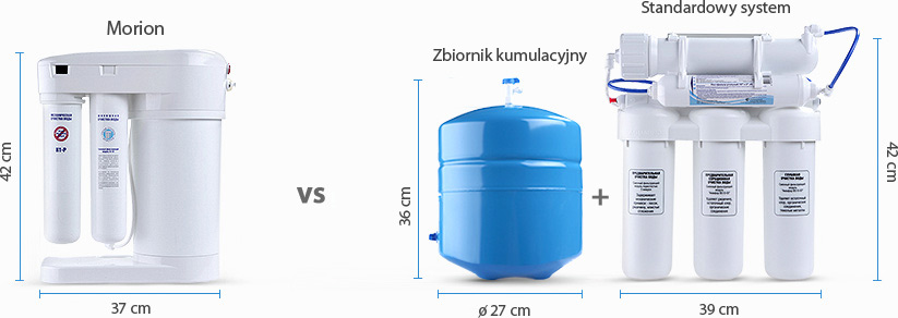 Він займає вдвічі менше місця, ніж традиційні фільтри зворотного осмосу. Фільтр досить малий, щоб легко поміститися під раковиною.