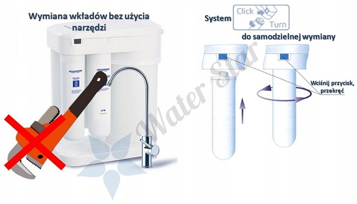 • Низька експлуатація вартість -просто, самостійна заміна картриджів (без інструментів і виклику сервісу). Вартість комплекту з 3 змінних картриджів становить 159 злотих (заміна кожні 8000 л - від 8 до 12 місяців).