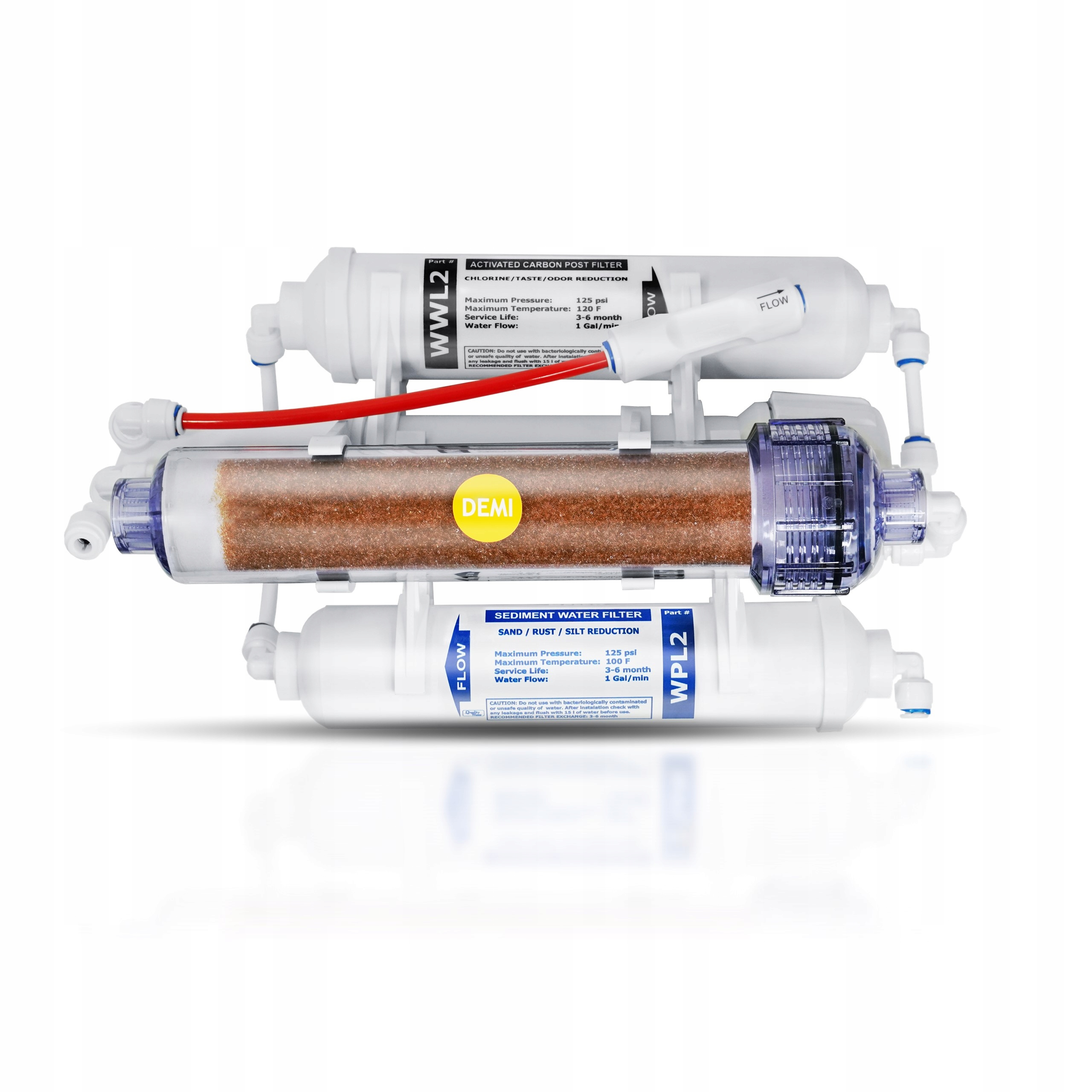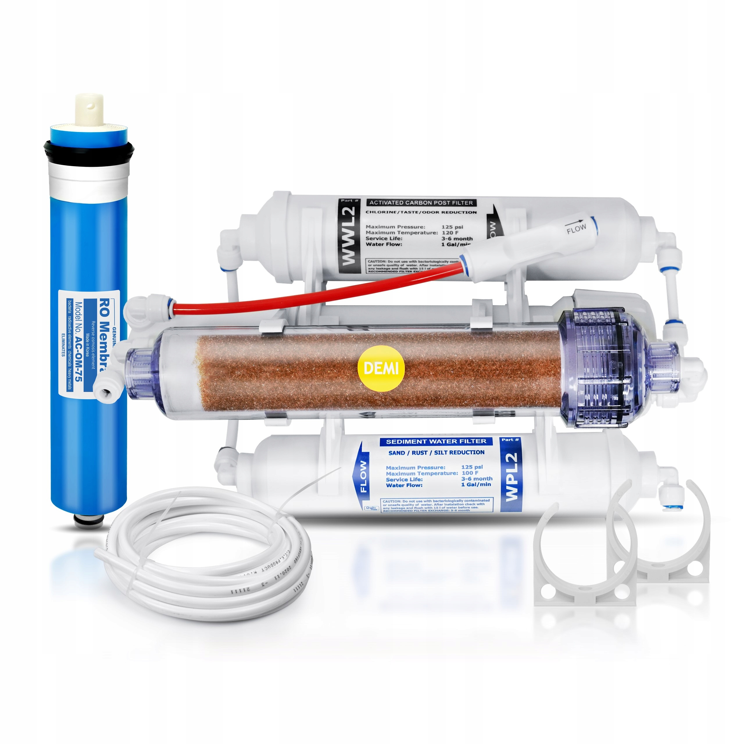 Повна, 4-ступенева, готова до встановлення система зворотного осмосу, з осмотичною мембраною 75 GPD і смолою MB400. Фільтр призначений в основному для морських і прісноводних акваріумів, що дозволяє отримувати ідеально очищену і повністю демінералізовану воду.