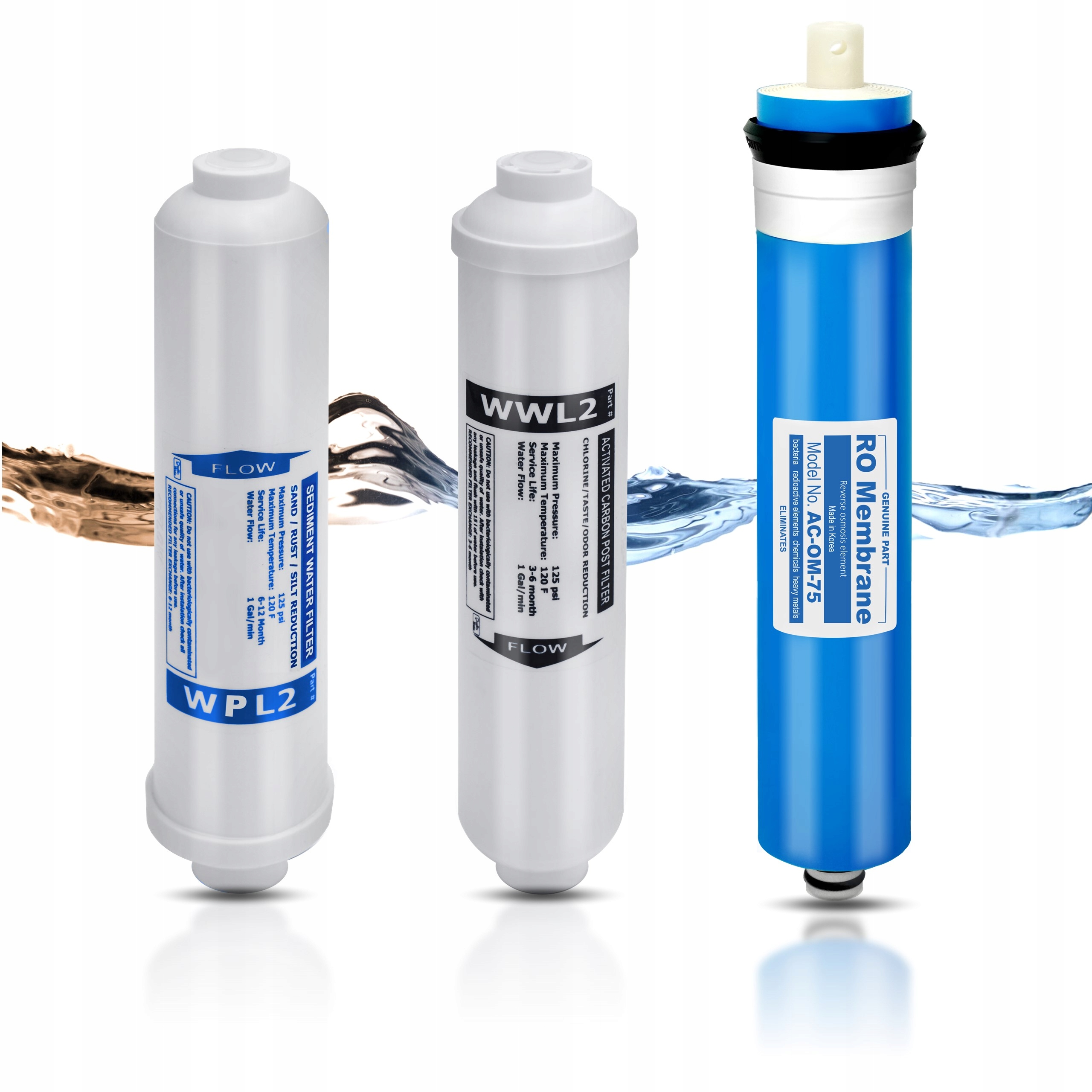 2. WWL2 - Вугільні лінійні картриджі видаляють з води тверді забруднювачі, такі як: хлор, сполуки хлору, органічні забруднювачі. (замінюється максимум кожні 6 місяців)