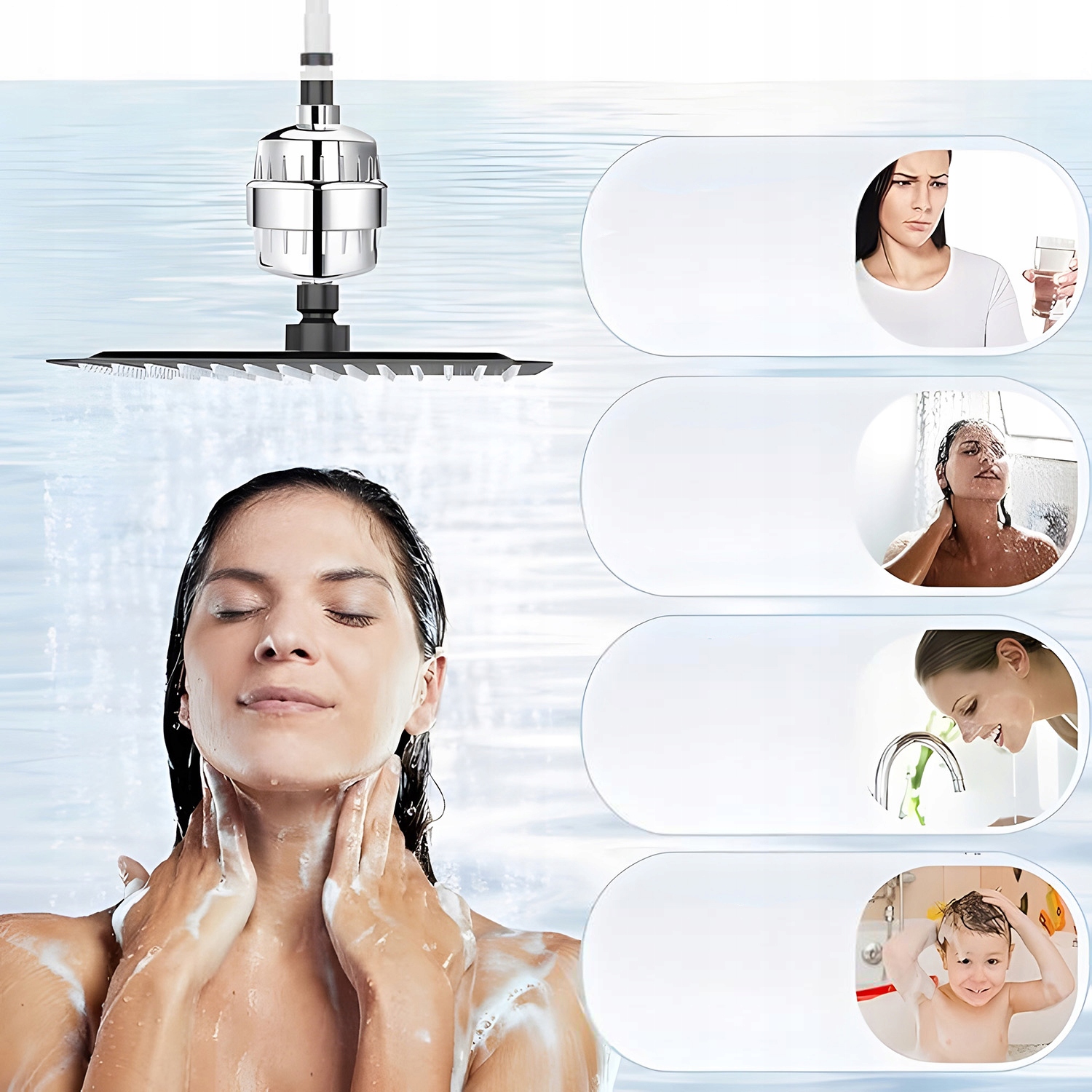Душовий фільтр особливо рекомендований людям із проблемами шкіри, алергією та атопічним дерматитом.