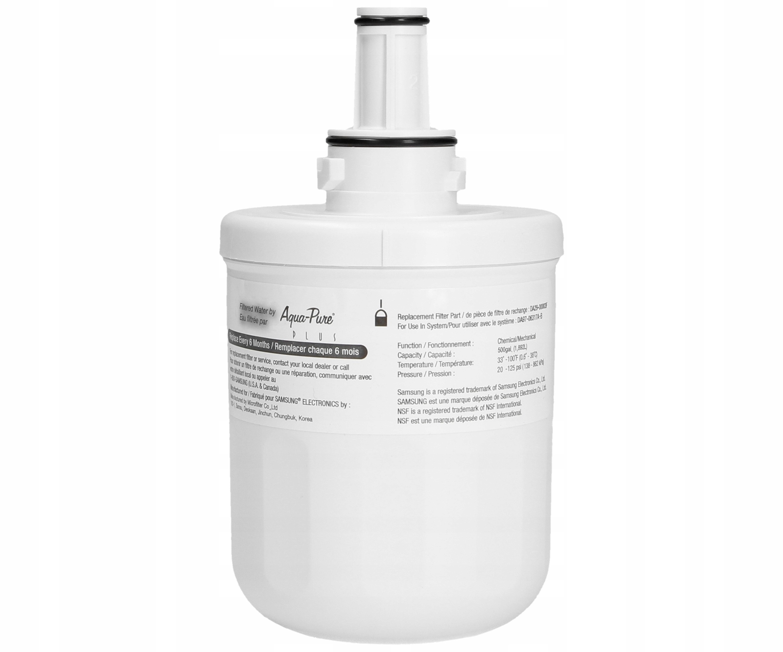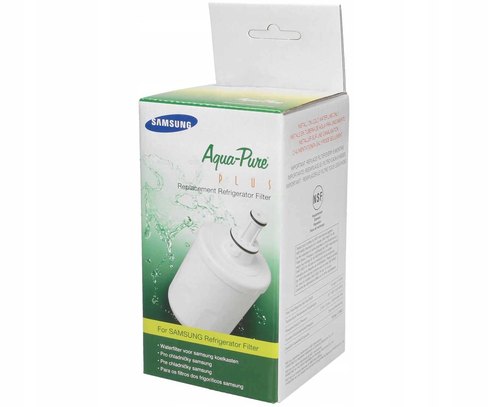 Фільтр Aqua-Pure поглинає всі шкідливі елементи. Це значно покращує склад води перед тим, як вона потрапить у нашу склянку чи автоматичний льодогенератор. Продукт гарантує безпеку. Він перевірений і сертифікований NSF