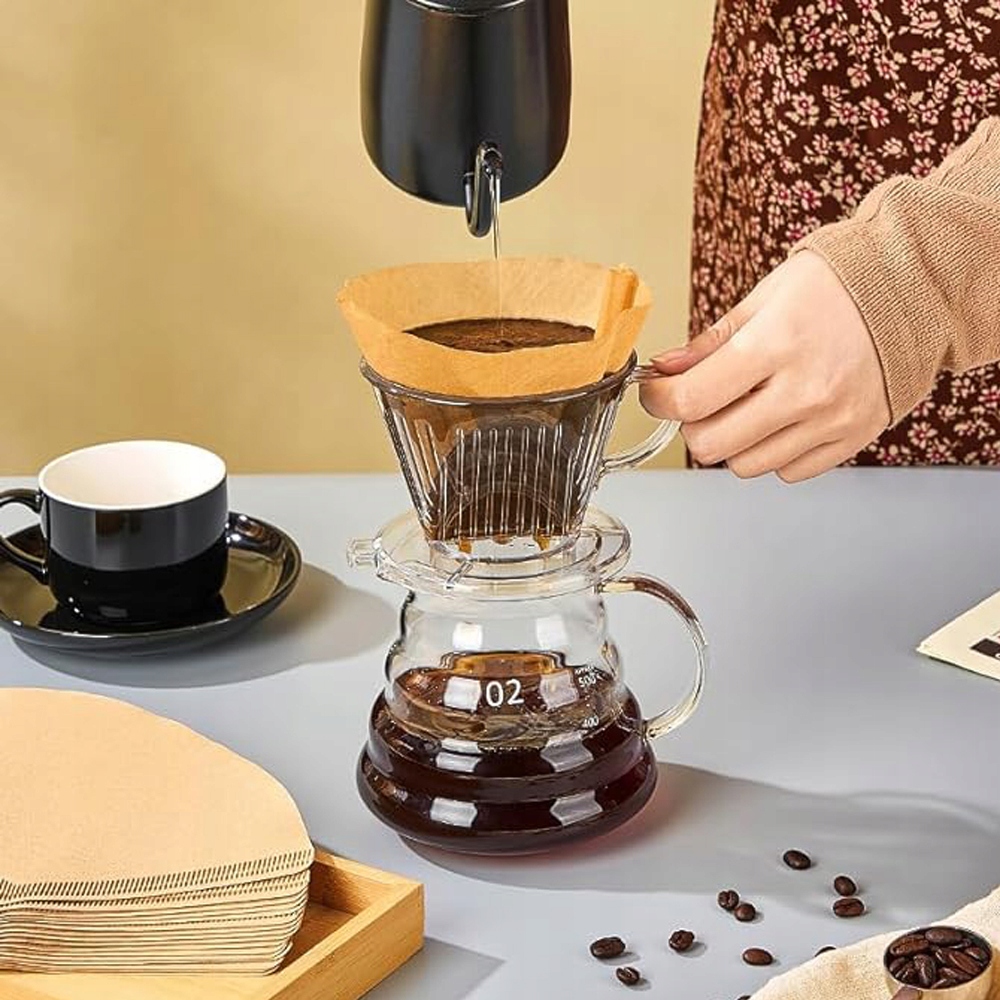 Наш фільтр для кави може видалити більшість олій, частинок кави та піни, попрощатися з відкладеннями та зберегти всю смак кави. Примітка. Перш ніж насипати мелену каву, змочіть кавовий фільтр у гарячій воді, це допоможе фільтрувальному паперу краще прилягати.