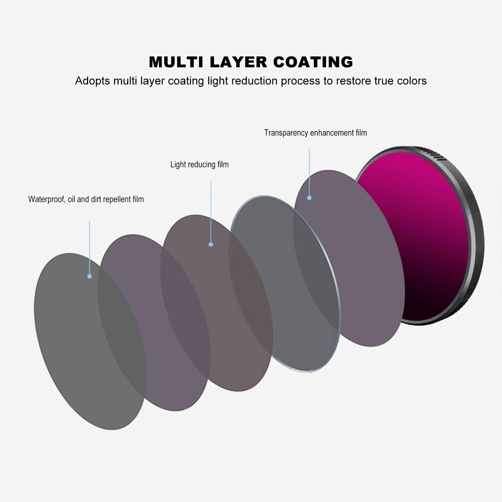 5. Легка й надтонка оправа. Фільтр об’єктива камери виготовлено за допомогою ретельної роботи з ЧПК і має надтонку алюмінієву оправу, яка є легкою, підходить для об’єктива для легкого встановлення та демонтажу та має міцну конструкцію, яка забезпечує стабільність навіть під час руху без навантаження.